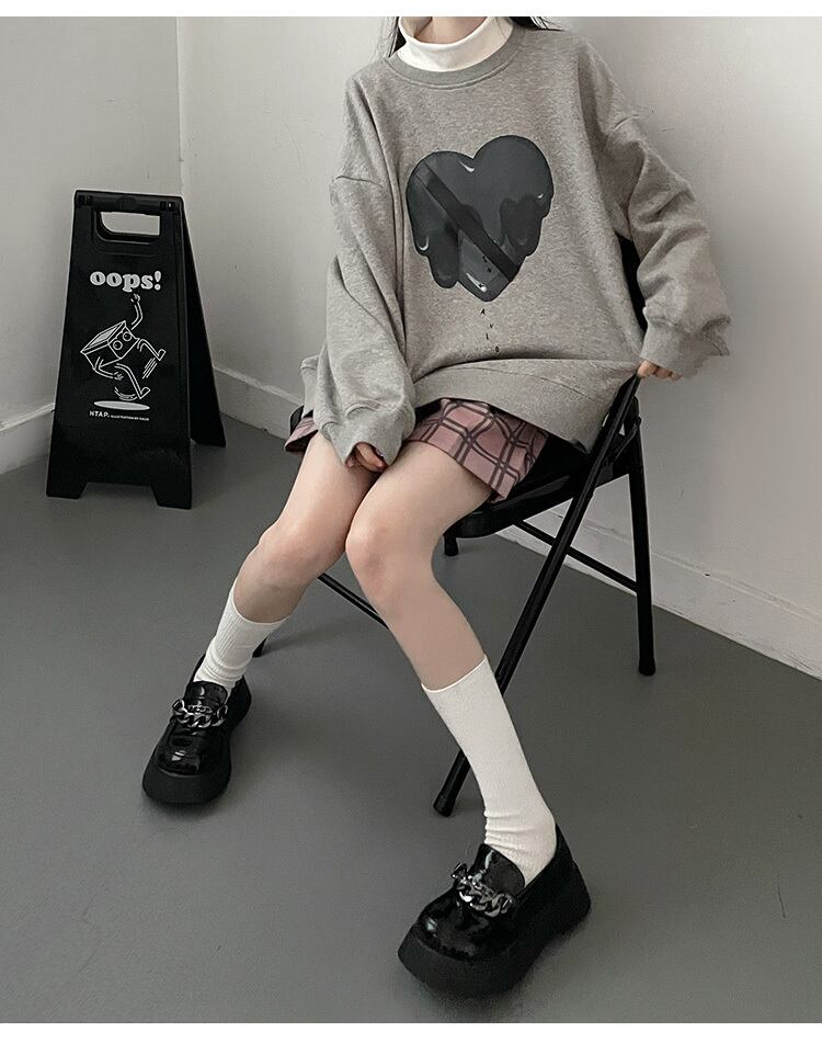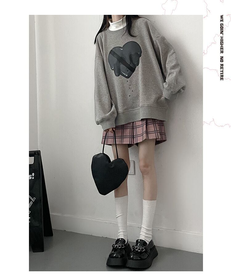 pinksavior冬プラスベルベットラウンドネック溶けたハートとレザーデザインピンクのセーター ウィンター 冬物 Oネック PSTB35693808648