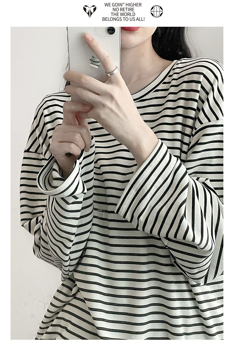 pinksavior(2枚マイナス20枚)3色ワイドストライプポケットデコレーションウィンタープラスベルベット長袖カジュアルTシャツ ロング 冬物 PSTB57122214230