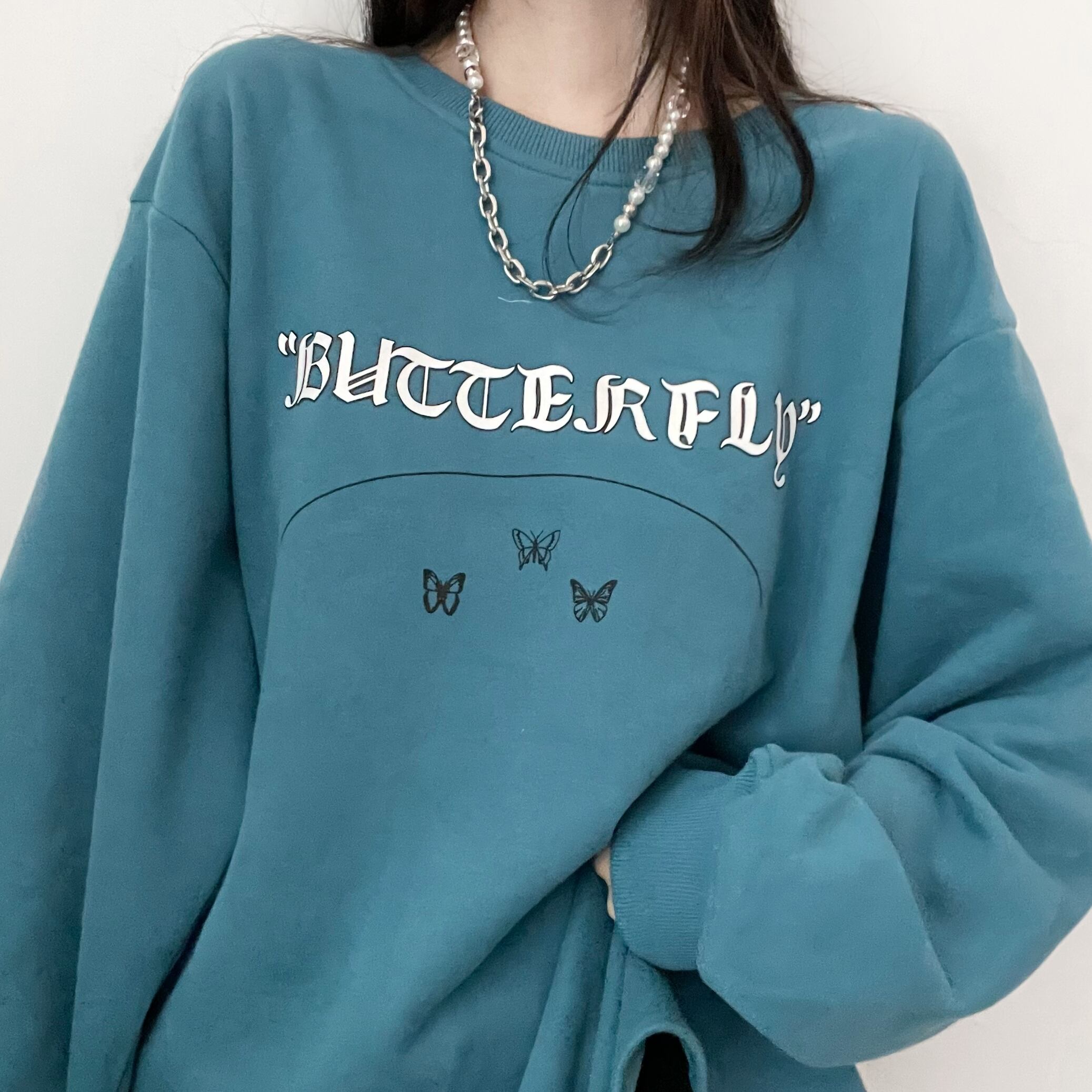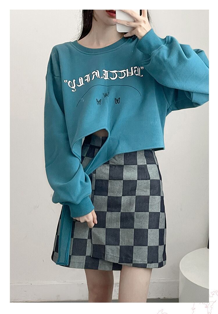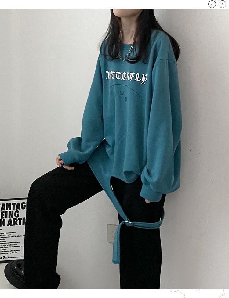 pinksaviorの青と白のボトムデザインは、バックルの長さとベルベットの立体的な蝶の秋と冬のセーターの女性が大好きです ホワイト ブルー オータム 秋物 ウィンター 冬物 PSTB73422227617