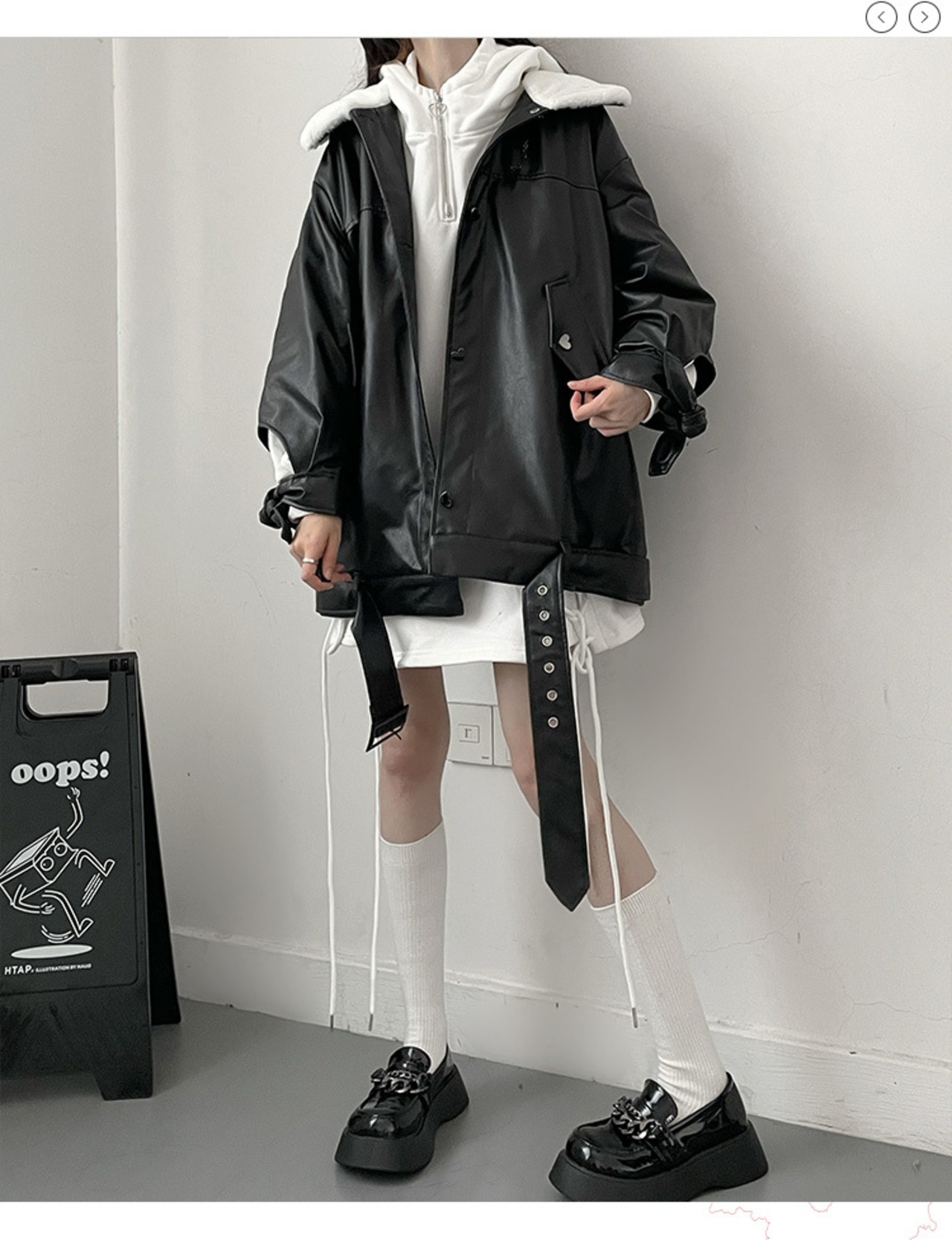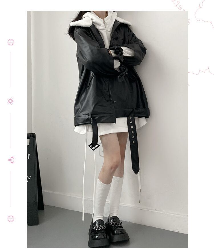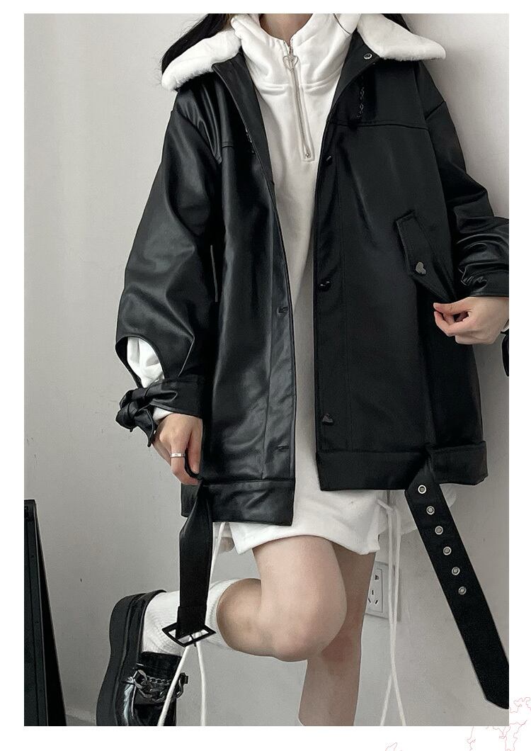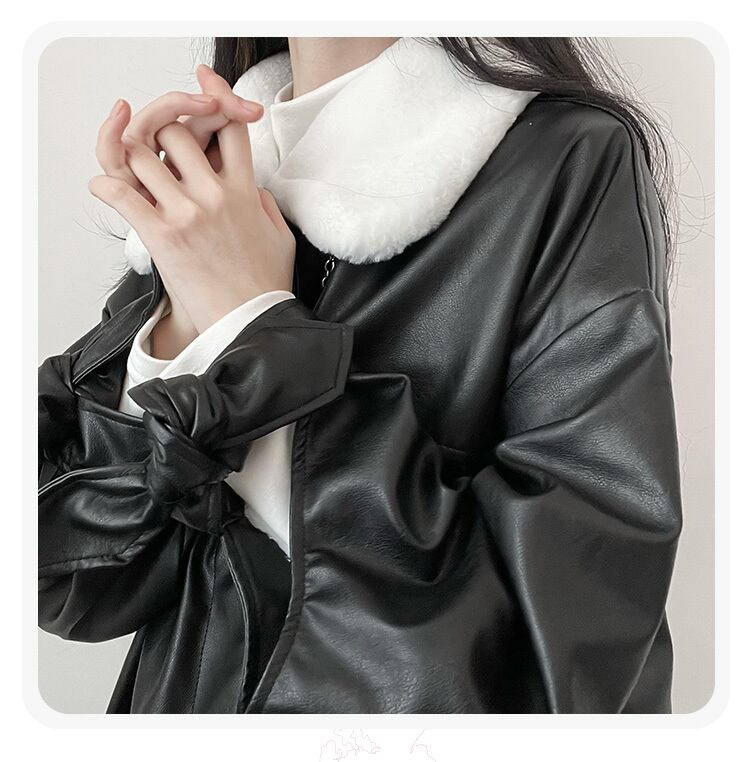 pinksaviorラムファーの襟の厚みのあるファイトレザーの蝶ネクタイの袖口はバックルの暖かいデザインのコットンジャケットが大好きです リボン PSTB1695456940