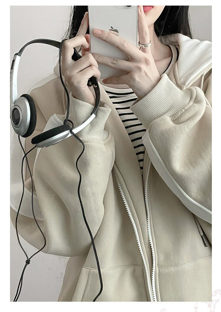 pinksavior3色袖ストライプステッチ濃厚プラスベルベット冬暖かい大学フード付きジャケット在庫あり ウィンター 冬物 PSTB94587655353