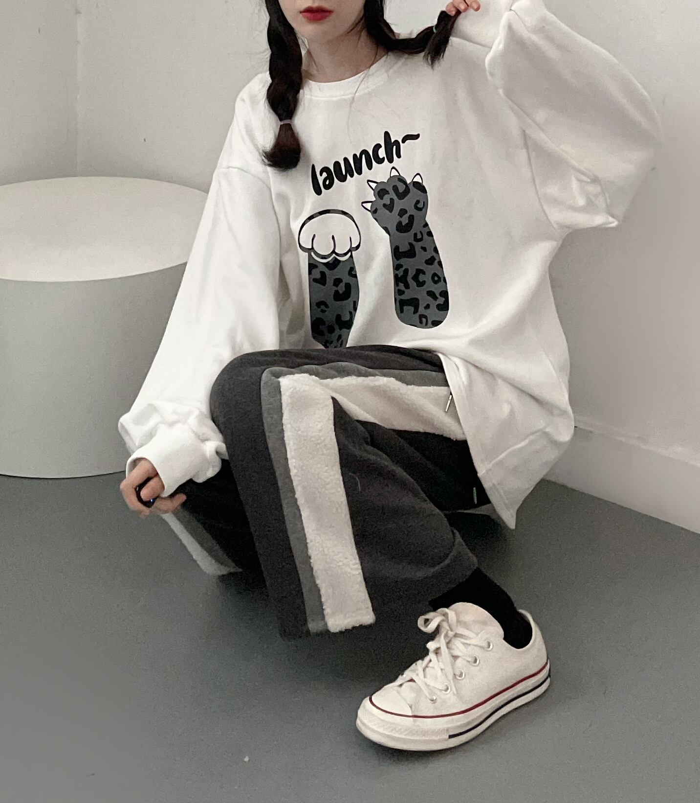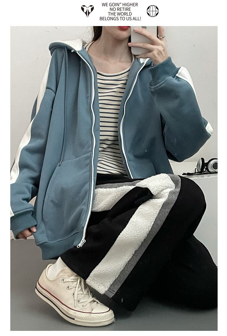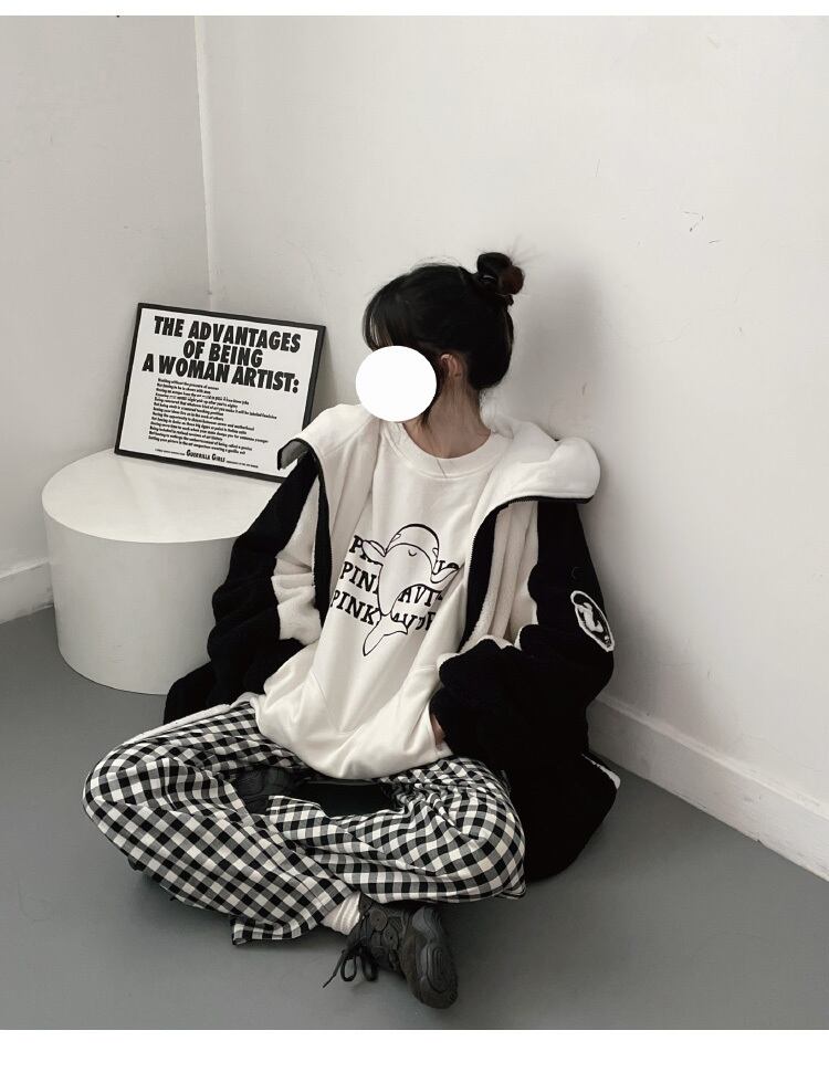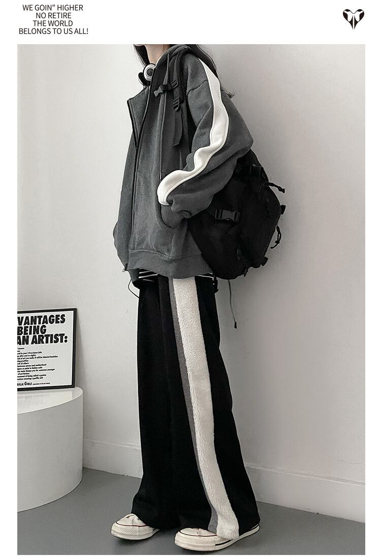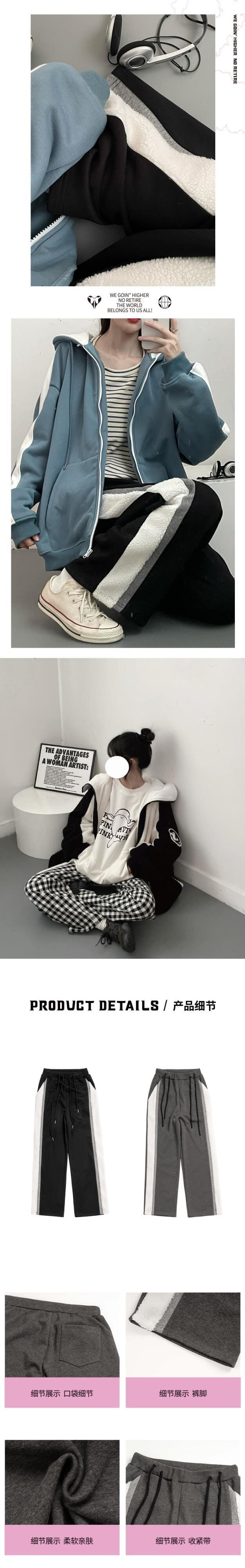 pinksaviorラムウールサイドステッチブラックとグレーの2色のスポーツとレジャーの厚みのある秋と冬のズボン オータム 秋物 ウィンター 冬物 PSTB46681484100