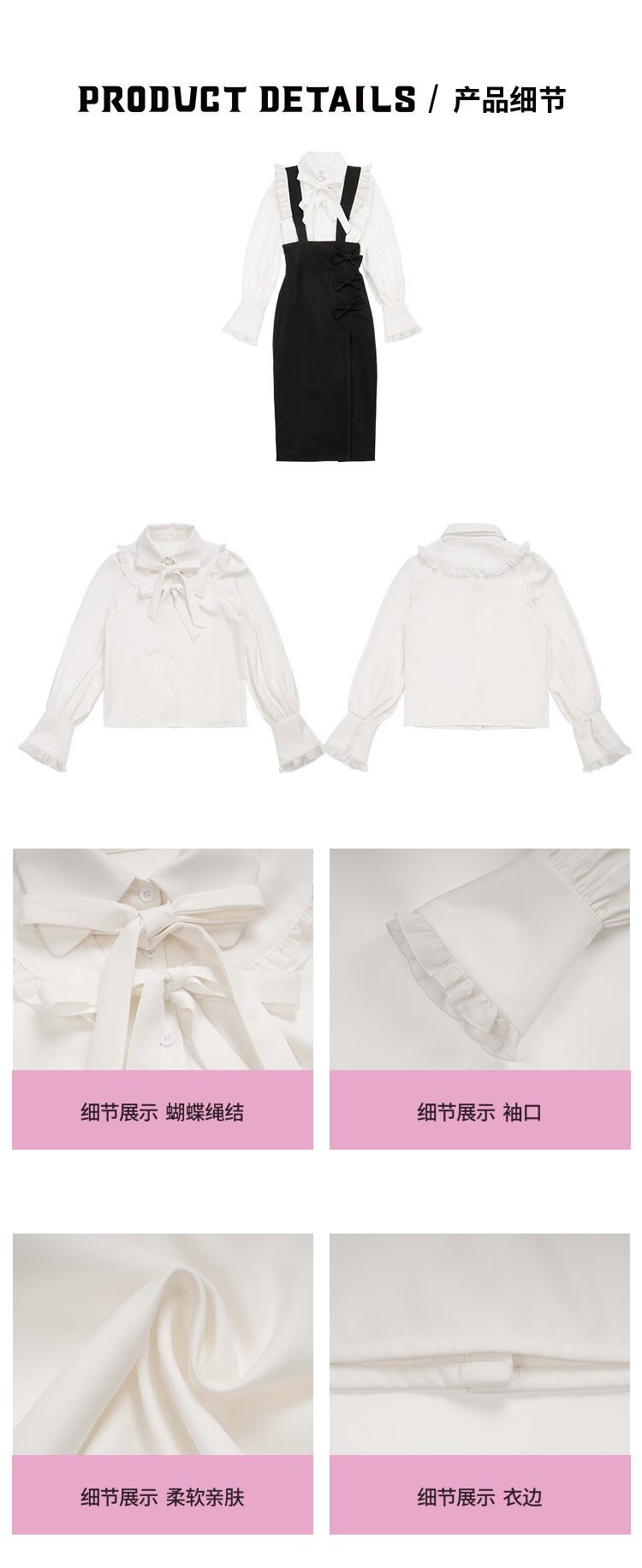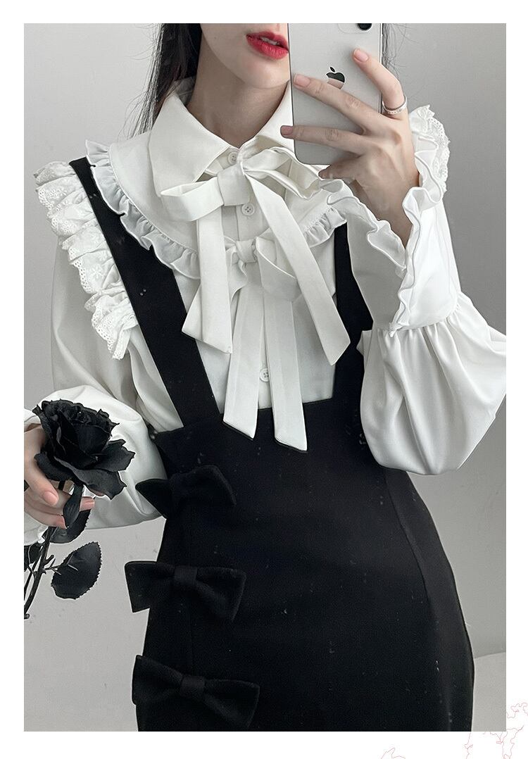 pinksaviorヘップバーンスタイルのエレガントなレースシャツフィッシュテールl秋冬の立体ボウベビーバッグロングスカート リボン オータム 秋物 ウィンター 冬物 PSTB16185209008