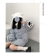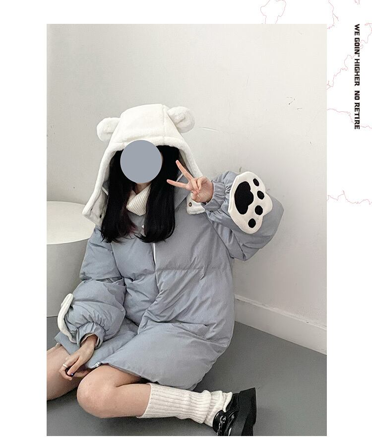 pinksaviorクマの足の装飾毛皮のようなフード付きの緩い冬の厚いパン綿の服 コットン ウィンター 冬物 PSTB96228281597
