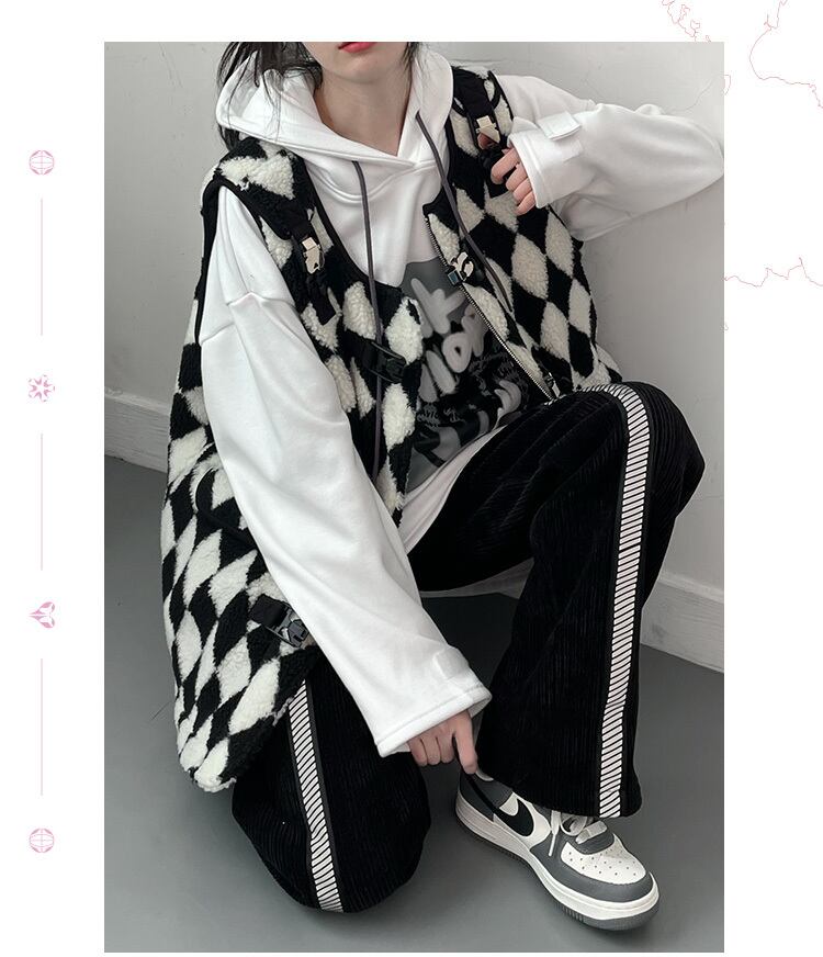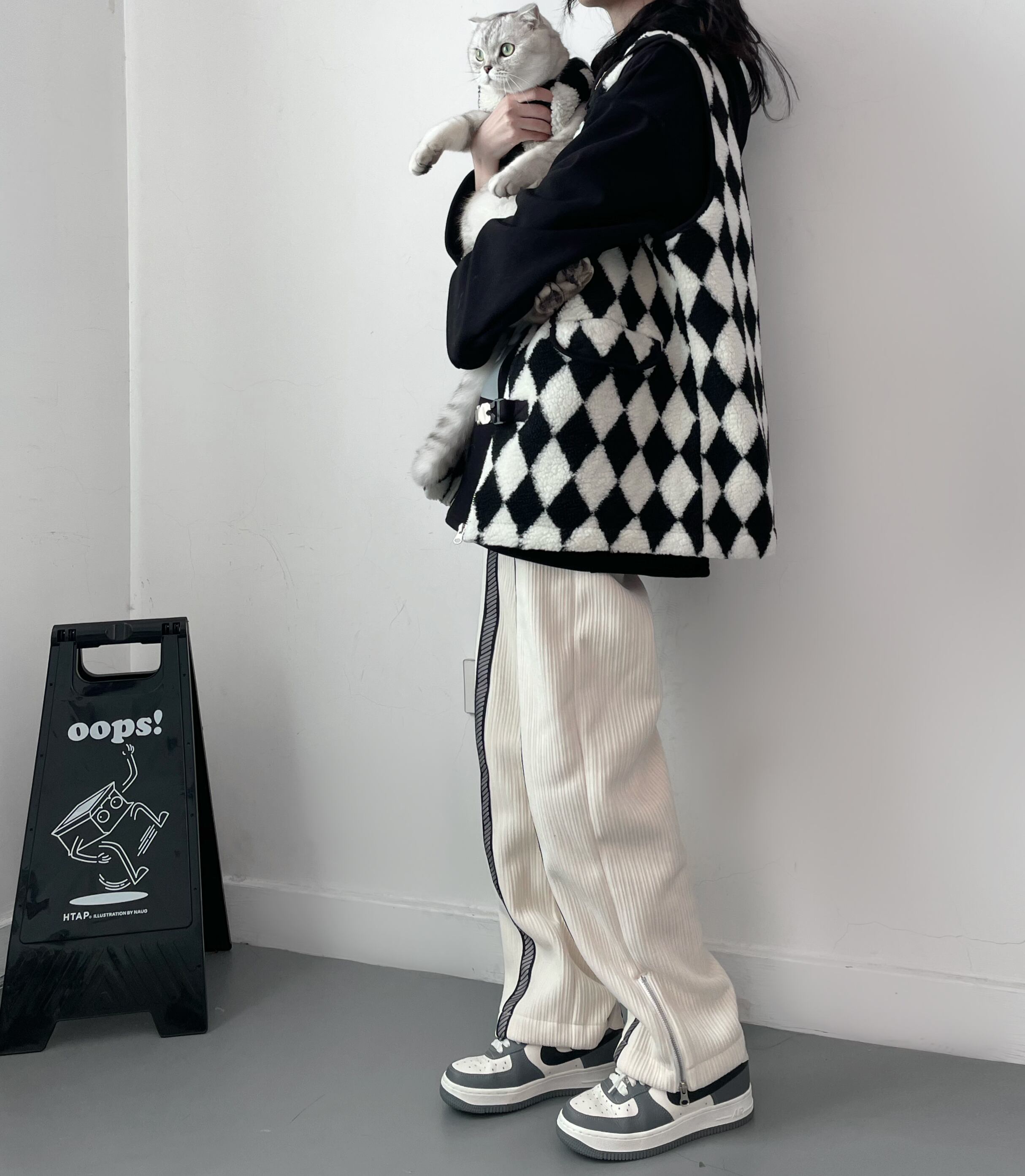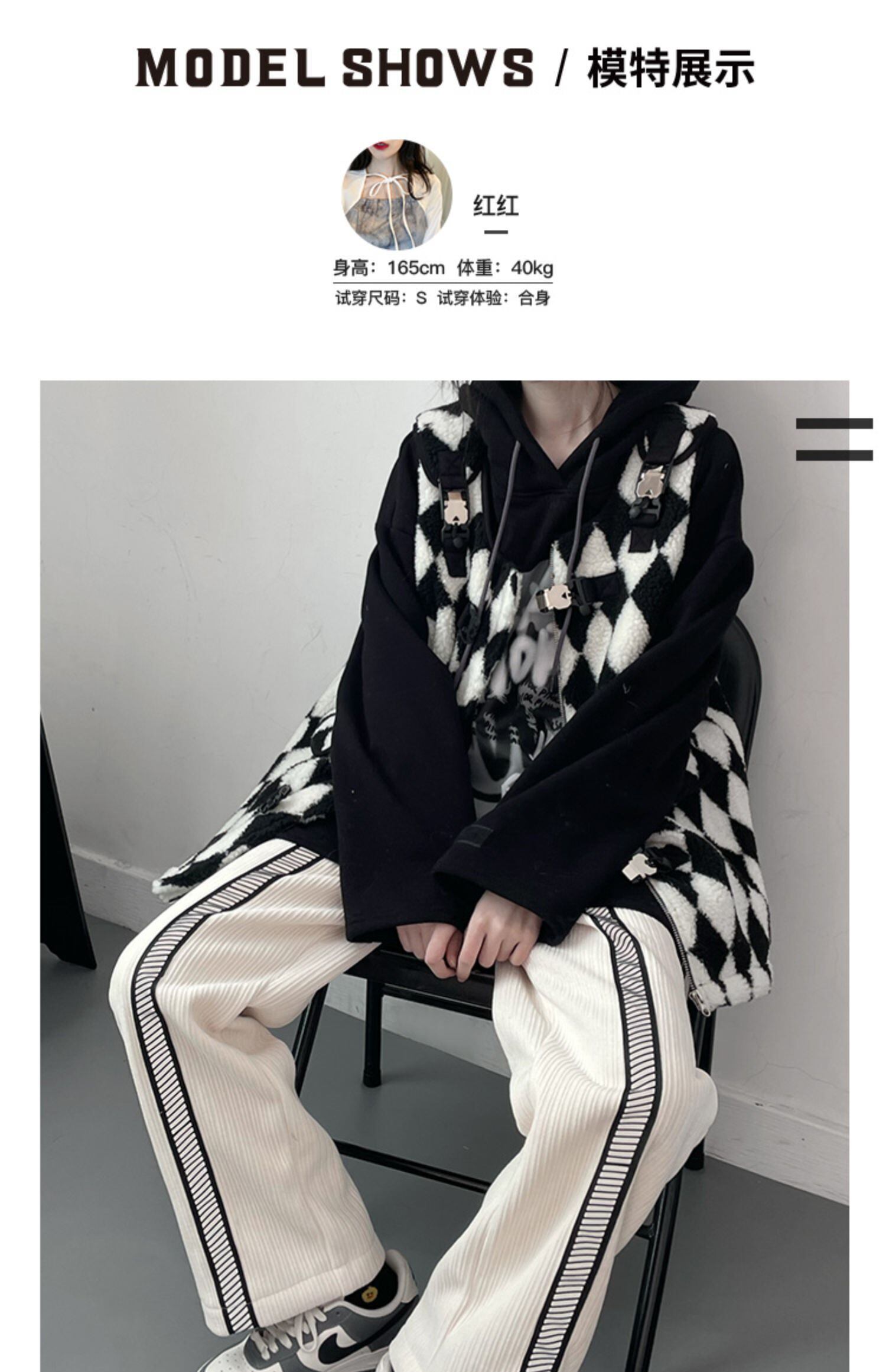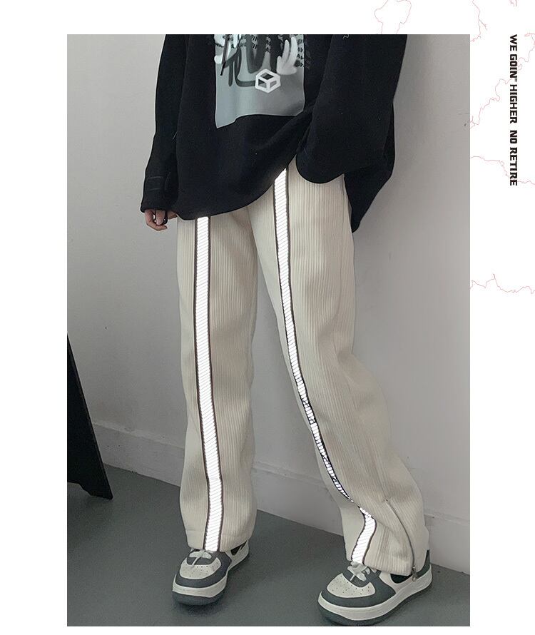pinksavior機能的な3M反射ウェビングステッチストライプベルベット黒と白のカジュ??アルパンツ ホワイト ブラック カジュアル PSTB26600649395