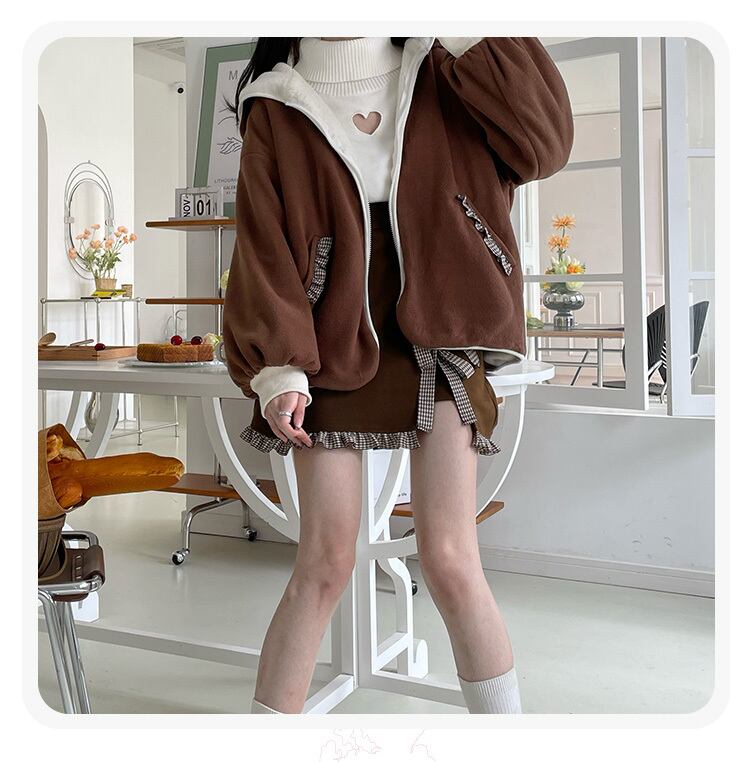 pinksaviorリボンで飾られたキャラメル色の冬の暖かいジンジャーブレッドとベルベットのパッド入りジャケット ウィンター 冬物 PSTB69132337063
