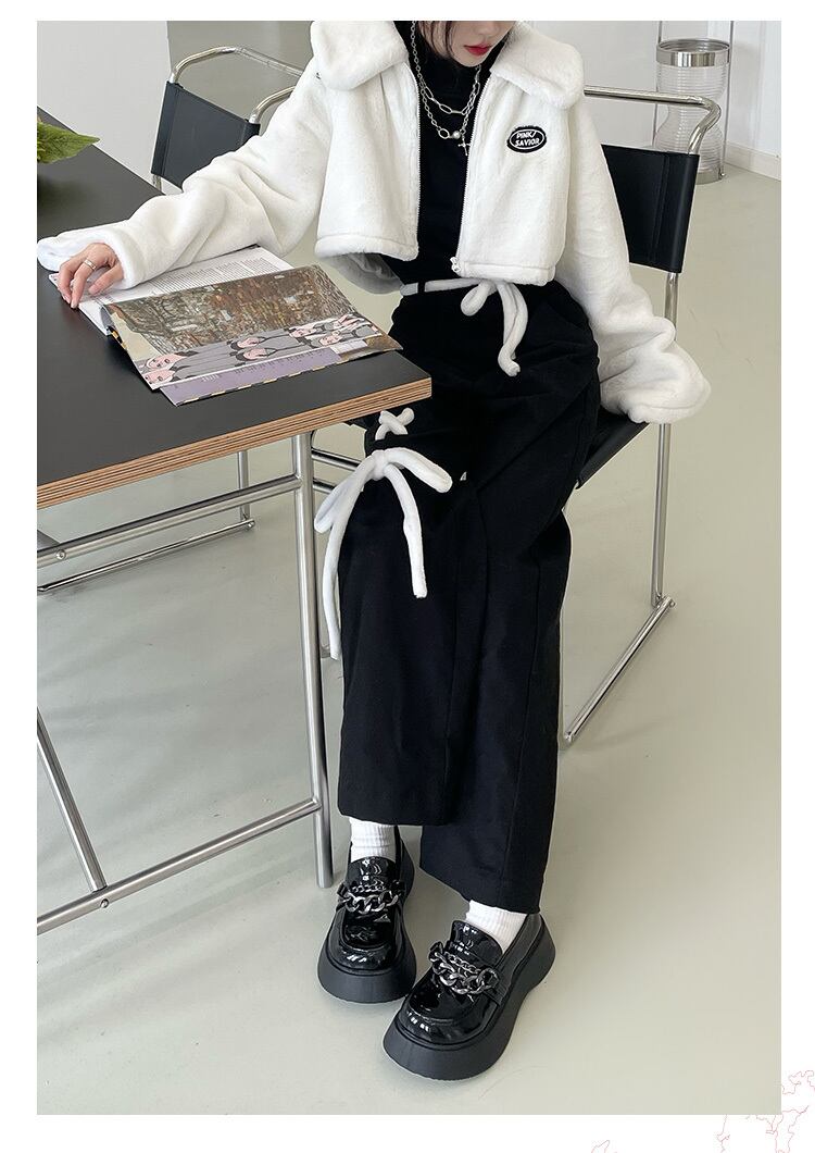 pinksavior冬の短い毛皮の包帯毛皮のコートのズボン黒と白のコントラストのスーツ ショート ホワイト ブラック ウィンター 冬物 PSTB6049004800