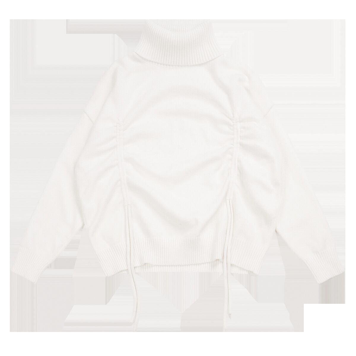 pinksavior冬の柔らかい黒と白のセーター、巾着裾スタッキングカラー ホワイト ブラック ウィンター 冬物 PSTB48681259138