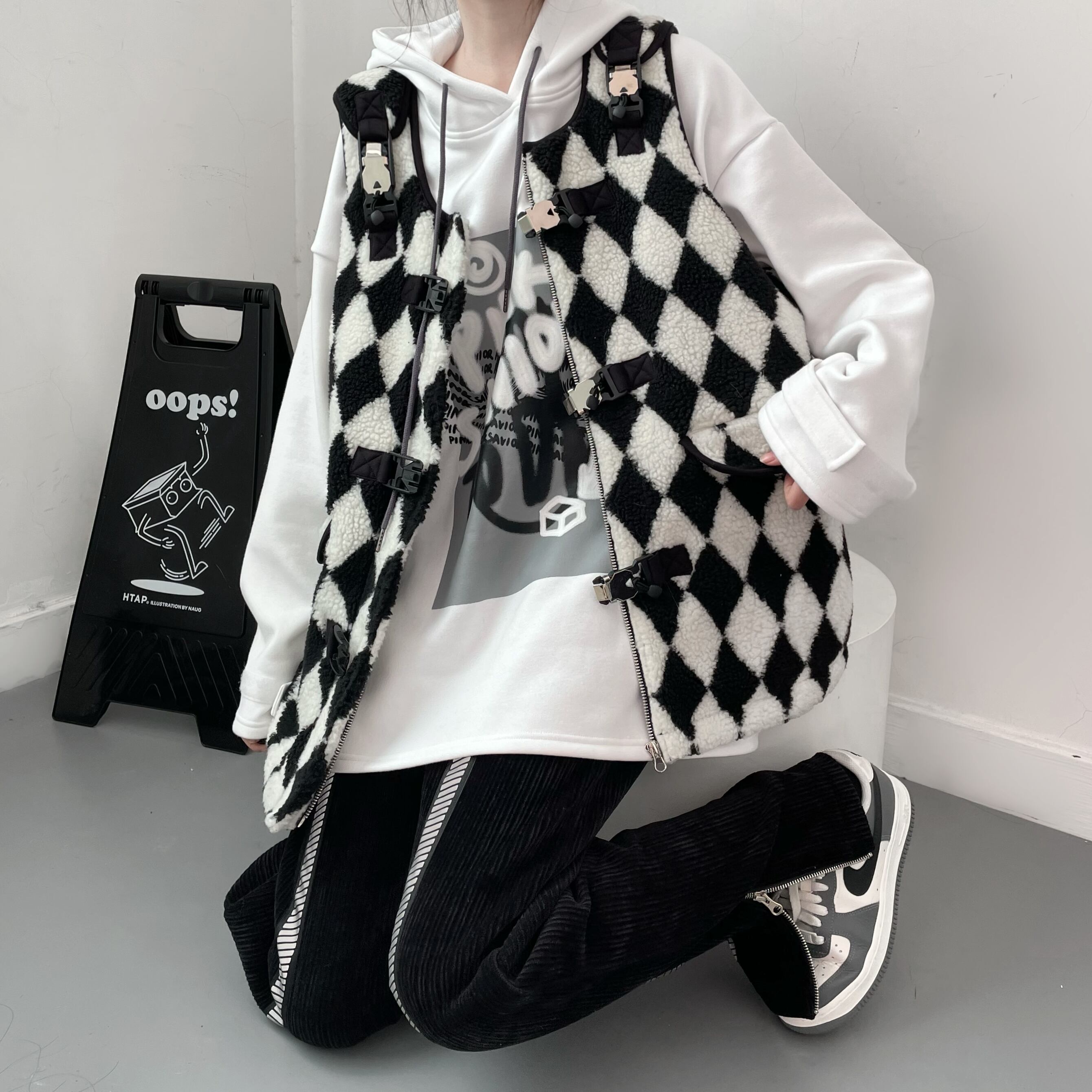 pinksavior菱形機能的なバックル冬の暖かいキルティングベスト ウィンター 冬物 PSTB70549044504