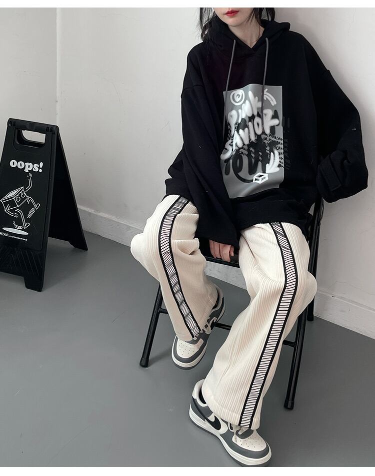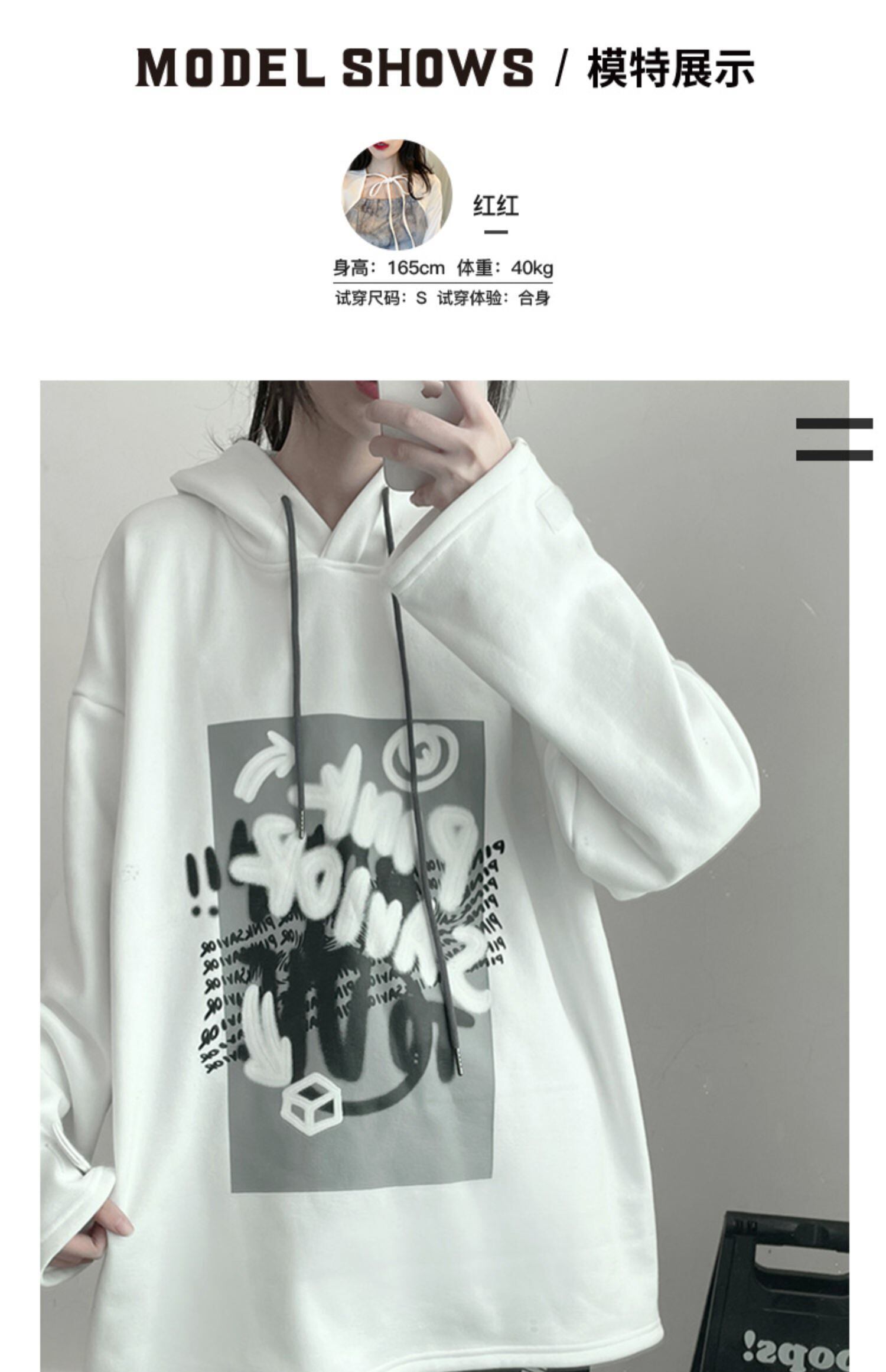 pinksaviorグレースケールの落書きとベルベットの袖口ベルクロストレートフード付き秋冬セーター オータム 秋物 ウィンター 冬物 PSTB37225267968