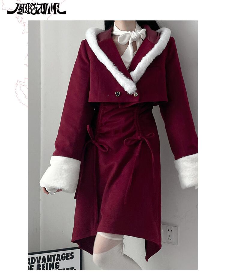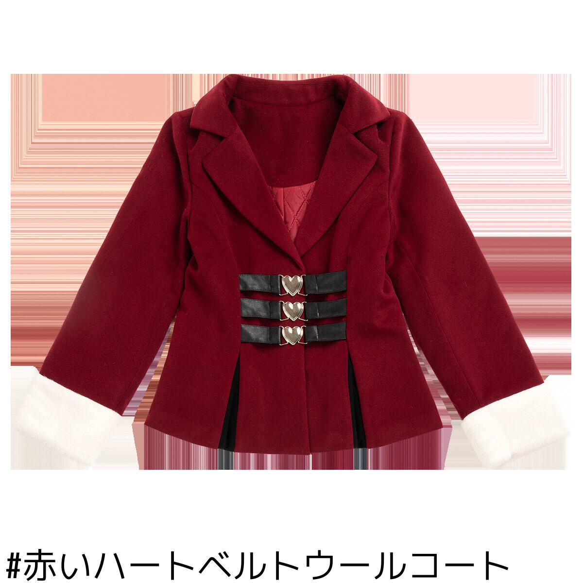 色:ブラックサスペンダースカート,黒スカート,ブラックハートベルトウールコート,赤いスカート,ブラックウールショートコート,フリーライド,赤いハートベルトウールコート