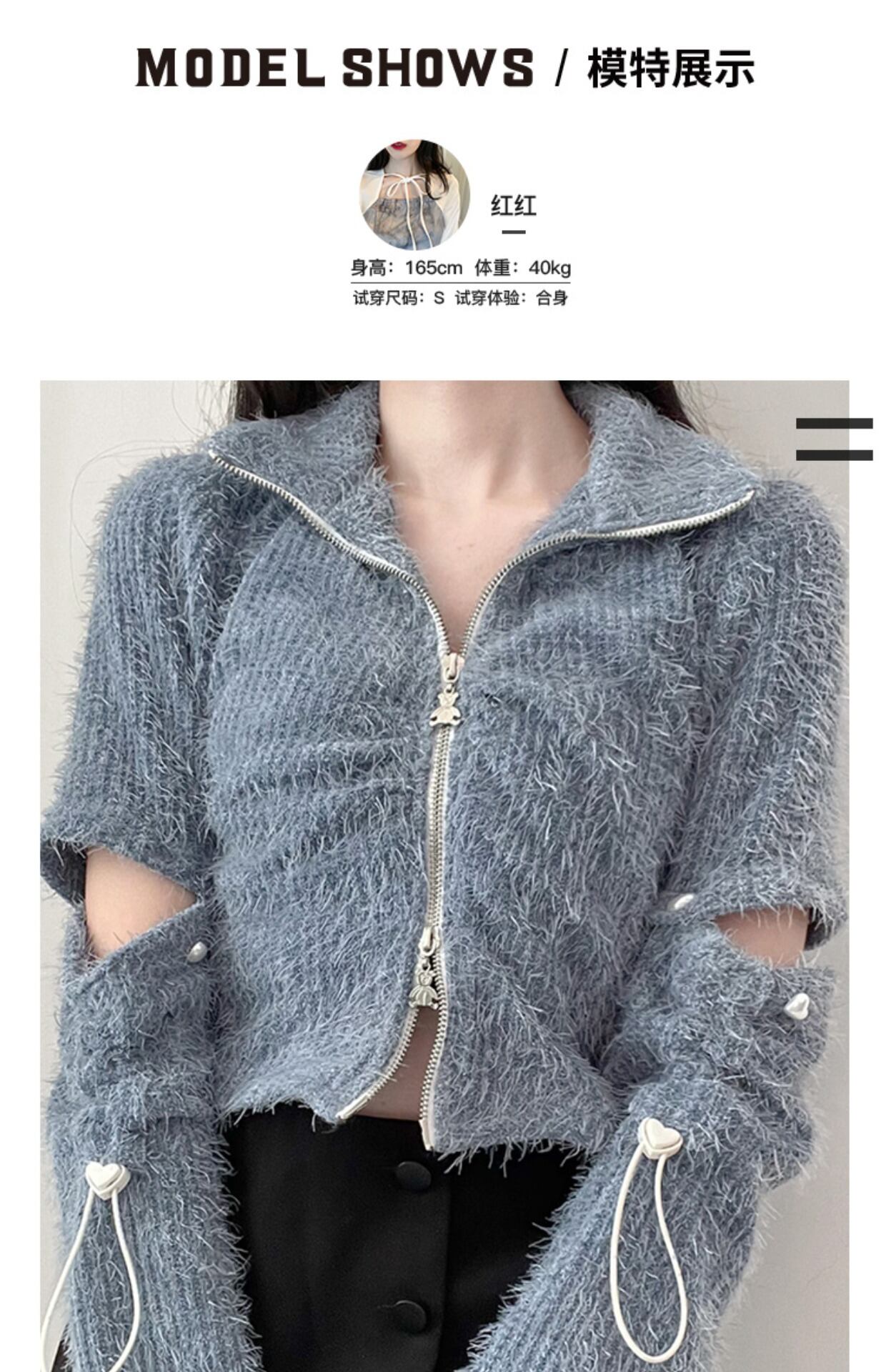 pinksaviorミンクベルベットスリーブ取り外し可能な2着ジッパーカーディガンジャケット PSTB55382195848