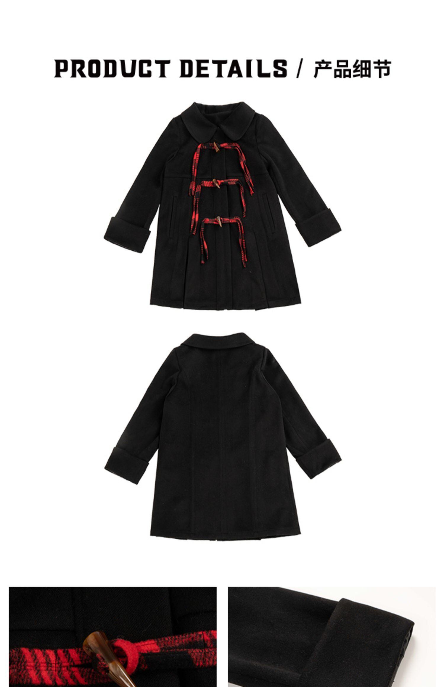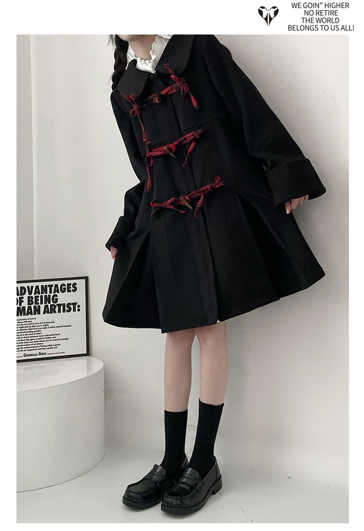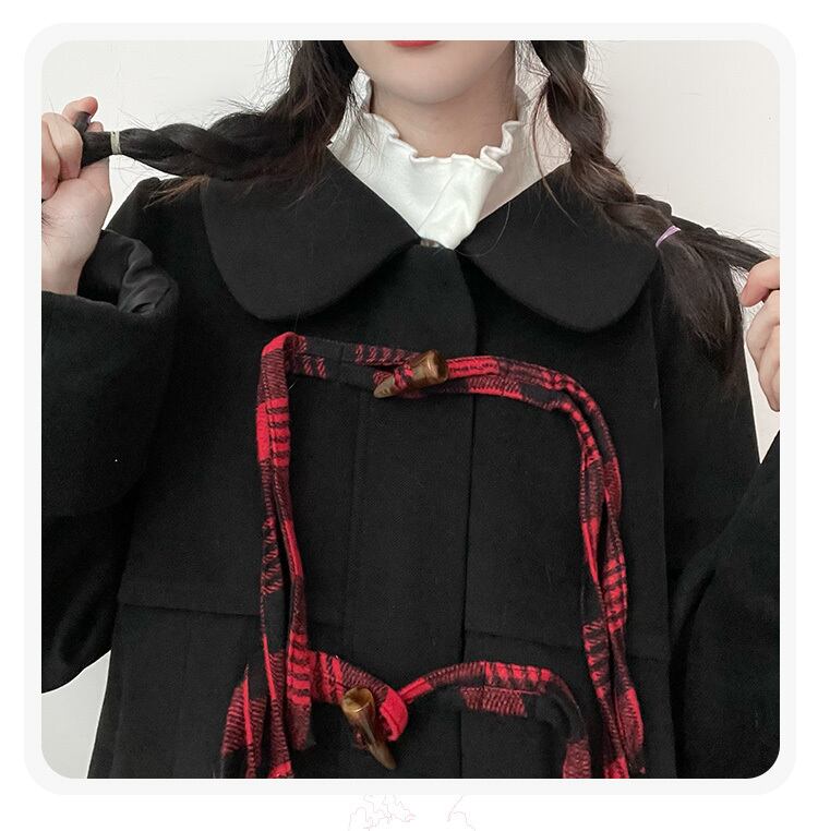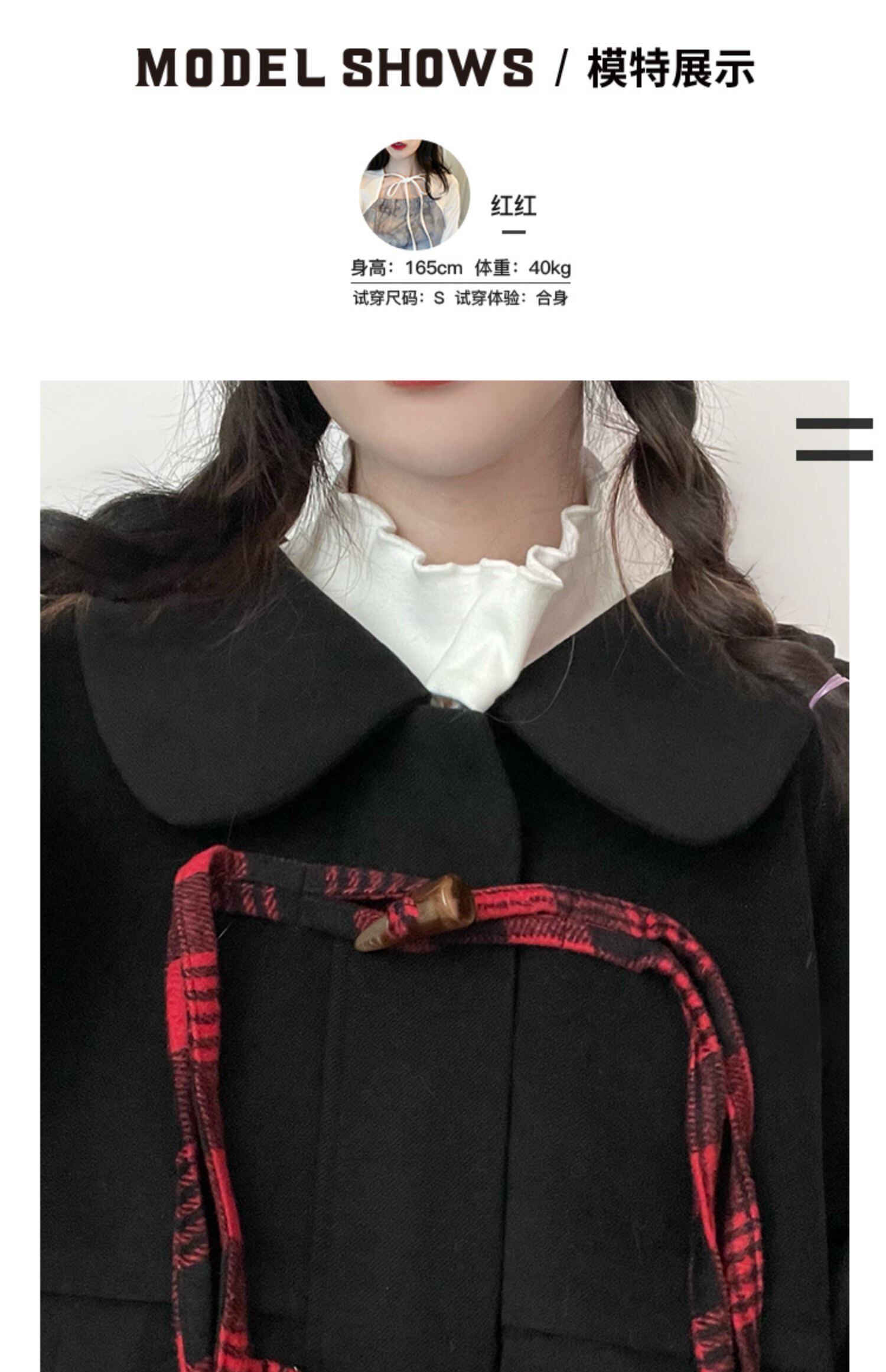 pinksavior格子縞の装飾的なストリーマーホーンバックル冬年のラウンドネックウールコート ウィンター 冬物 Oネック PSTB46100969096