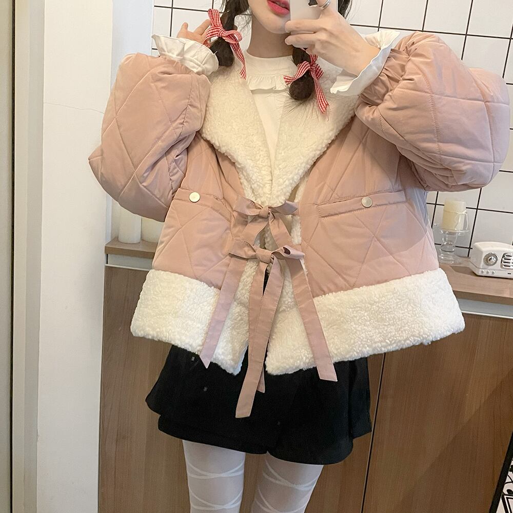 pinksavior[クリームストロベリー]厚手のベルベットカスタムダイヤモンドラティスネクタイ暖かい冬の綿の服 コットン ウィンター 冬物 PSTB62163409053