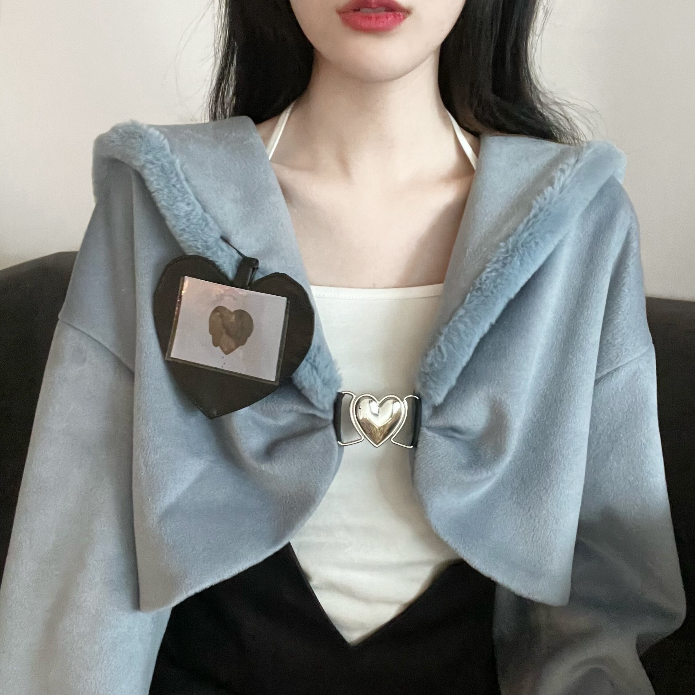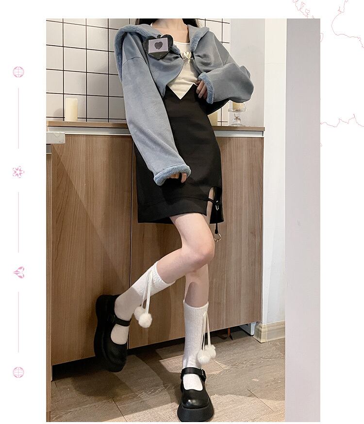 色:超ショートラブスーツ,ホワイトホルターネックベスト,ベルベットサスペンダースカート, ウエストスカート,ショートラブファーコート