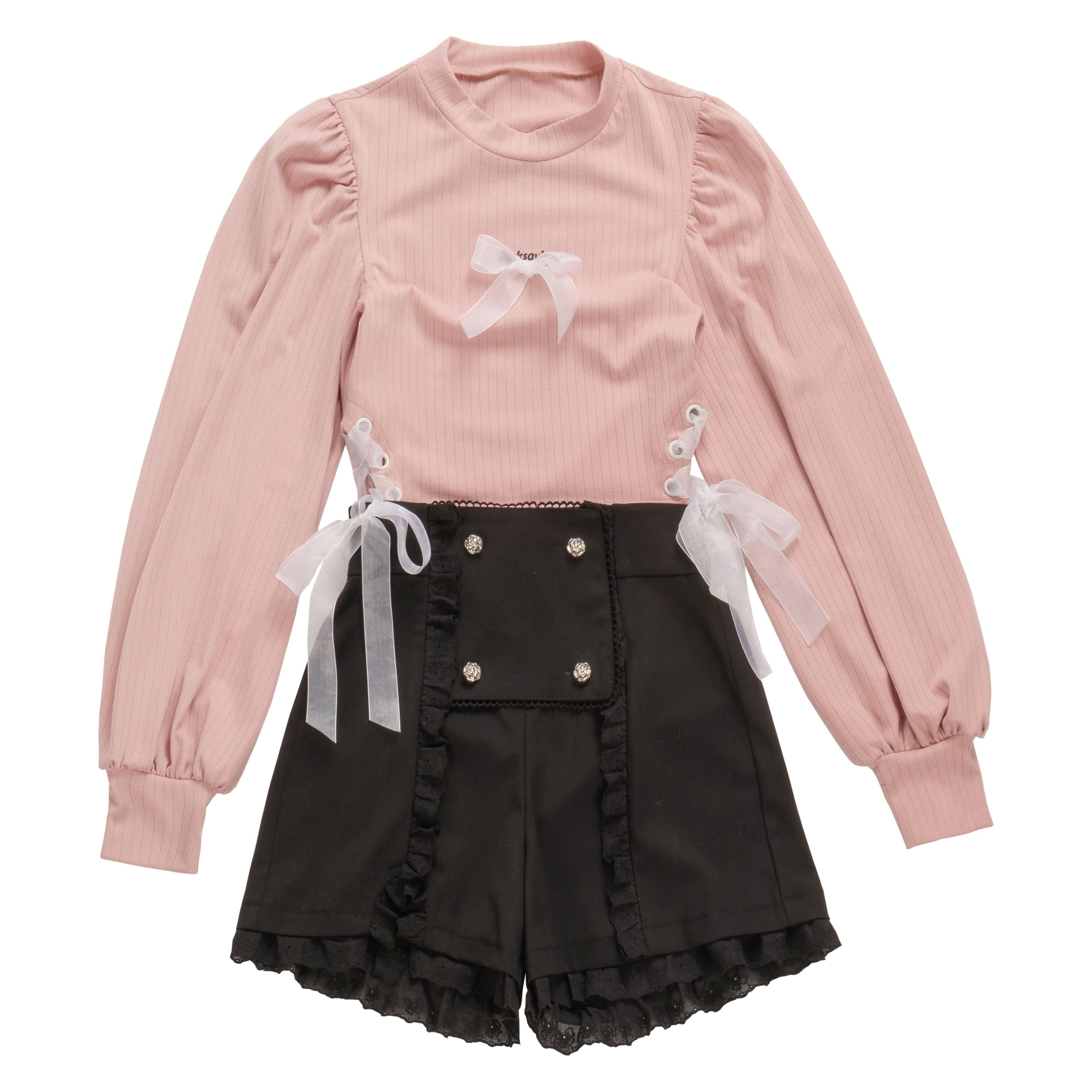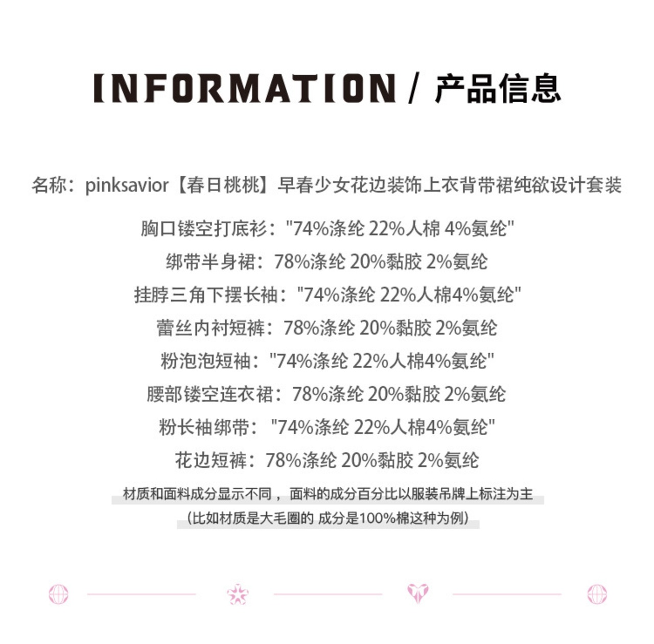 pinksavior【春の桃桃】早春ガールズレースデコレーショントップストラップスカートピュアデザイアセット ピンク スプリング 春物 PSTB4817291708