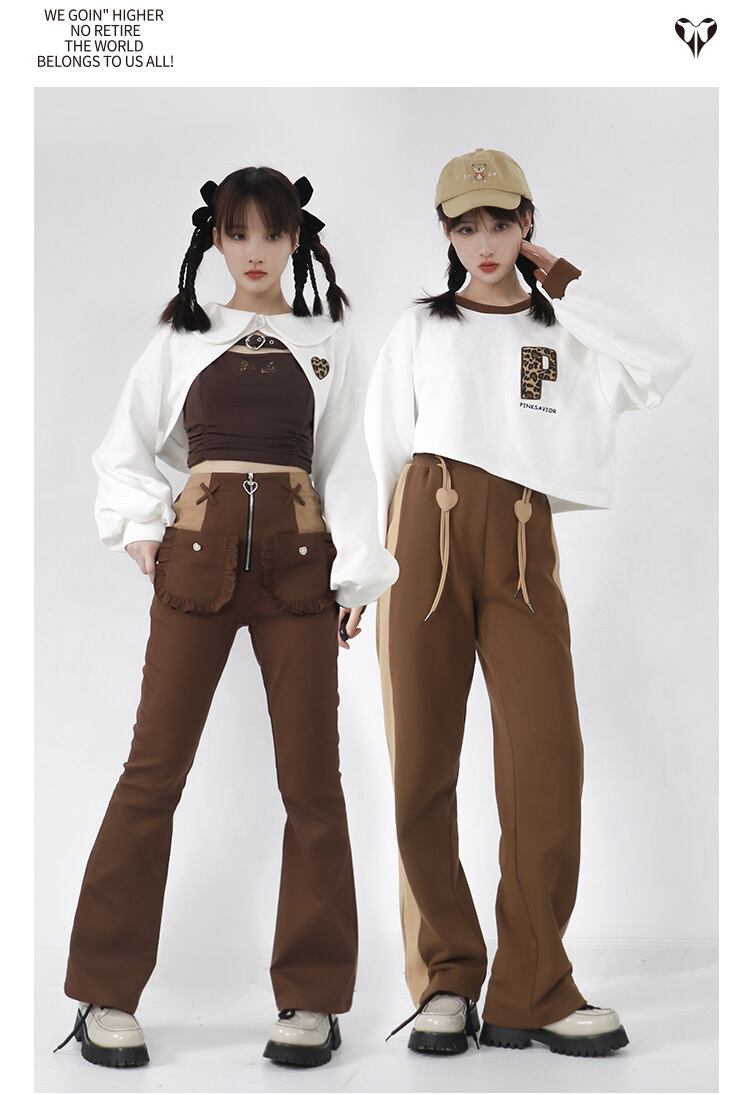 色:ショートセーター,クリンクルサスペンダー,超ショートドールカラートップ,ブーツカットパンツ,ドローストリングストレートレッグパンツ