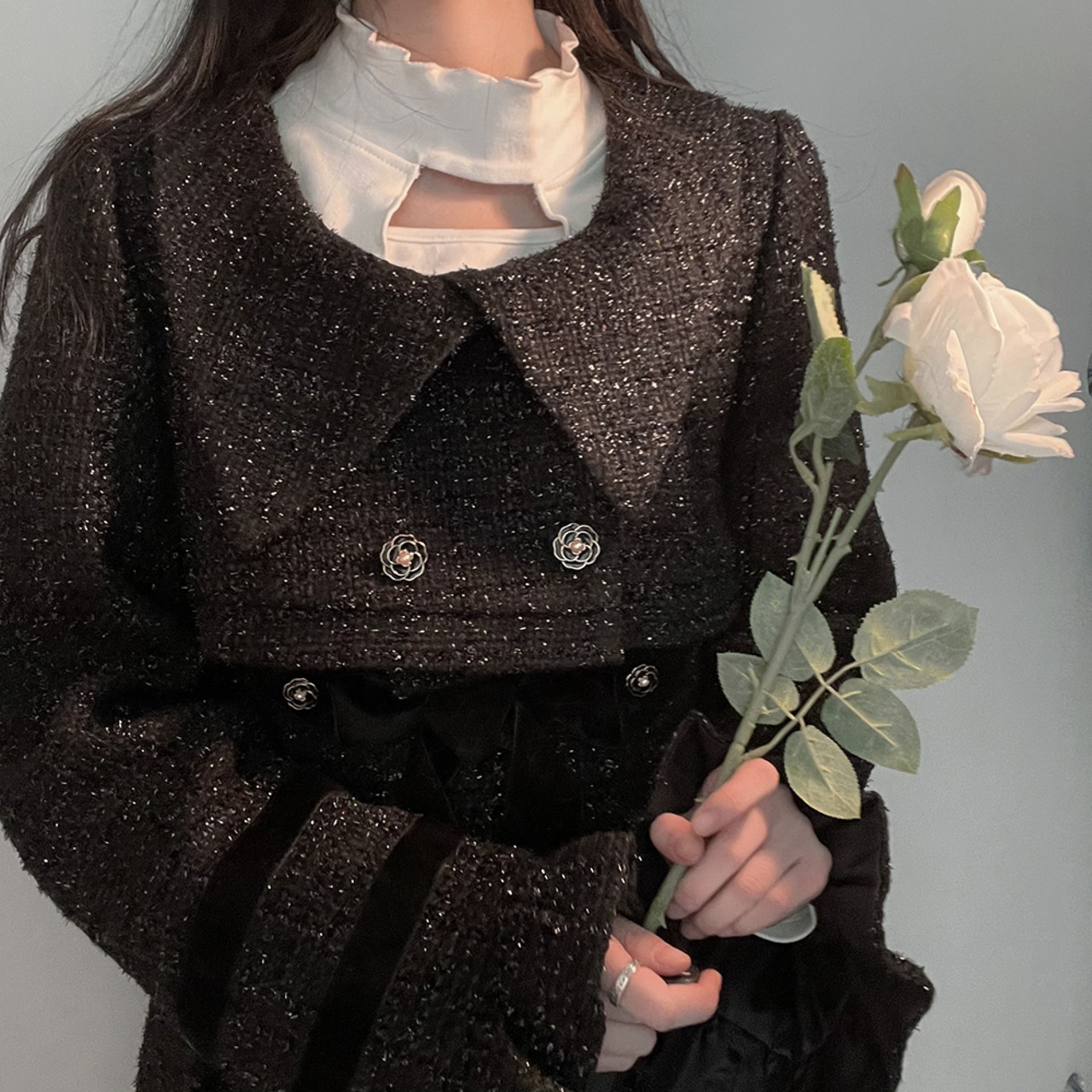 色:ツイードトップ,ツイードドレス,ツイードロングコート,カットアウトハイカラー
