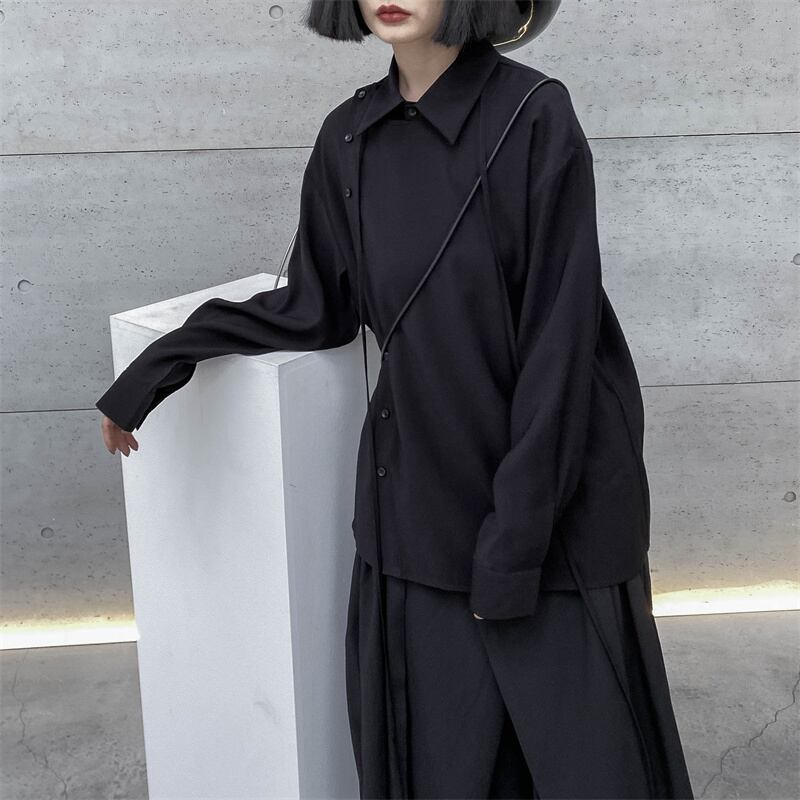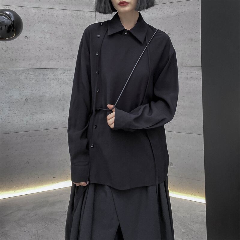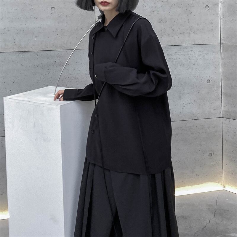BLANK ANDWHITEダークヤマモトニッチデザイン長袖シャツレディースイーズルーズスプリングニュースタイル ロング ホワイト 春物 BWTB57692045363