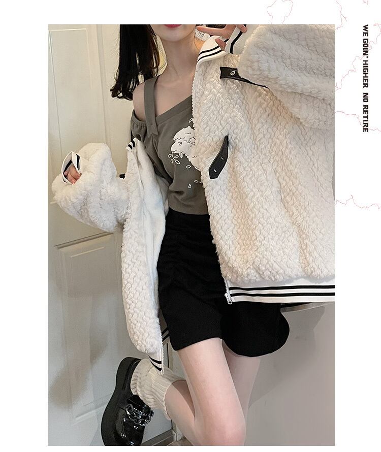 pinksavior[子羊の]暖かいダイヤモンド形の模造ウサギの毛皮のコート冬の暖かいスーツ ウィンター 冬物 PSTB27767637634