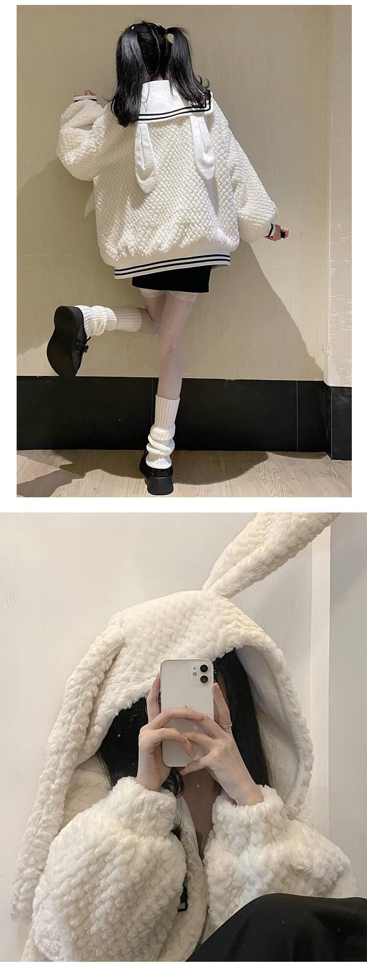 色:長い耳の毛皮のコート,ネイビーカラーファージャケット,グリーンブラッシュドカシミアロングスリーブ,ロングプリーツスカート,ショートプリーツスカート
