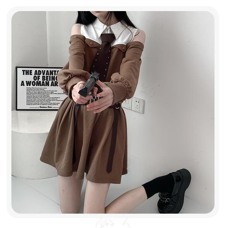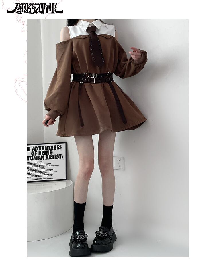 色:ショートスーツジャケット,内部,ベルト付きスタックプリーツスカート,ベルト付きオフショルダーセータードレス,リベットネクタイ