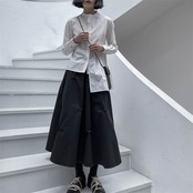 BLANK ANDWHITEダークボタンプリーツデザインスカートニッチ無地Aラインミドル丈スカートスプリング ホワイト 春物 ソリッドカラー BWTB31564617910