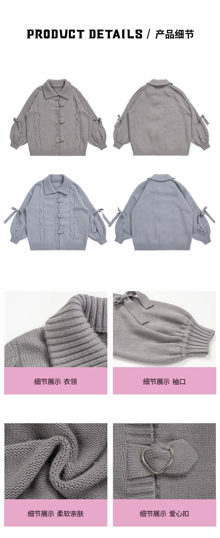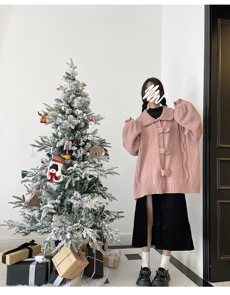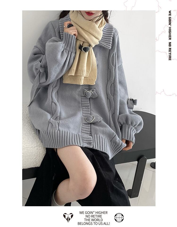 pinksaviorハートボタン大きな袖口の蝶ネクタイ厚手のニットヘビーワークセーターコート リボン PSTB50018342677