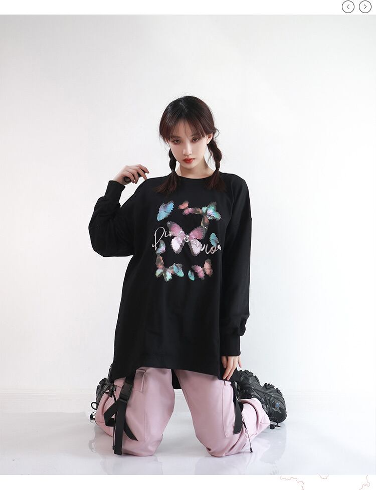 pinksaviorファンタジーバタフライ丈春スモールテリーソフト肌にやさしい黒のセータースポット ブラック スプリング 春物 PSTB56637816542