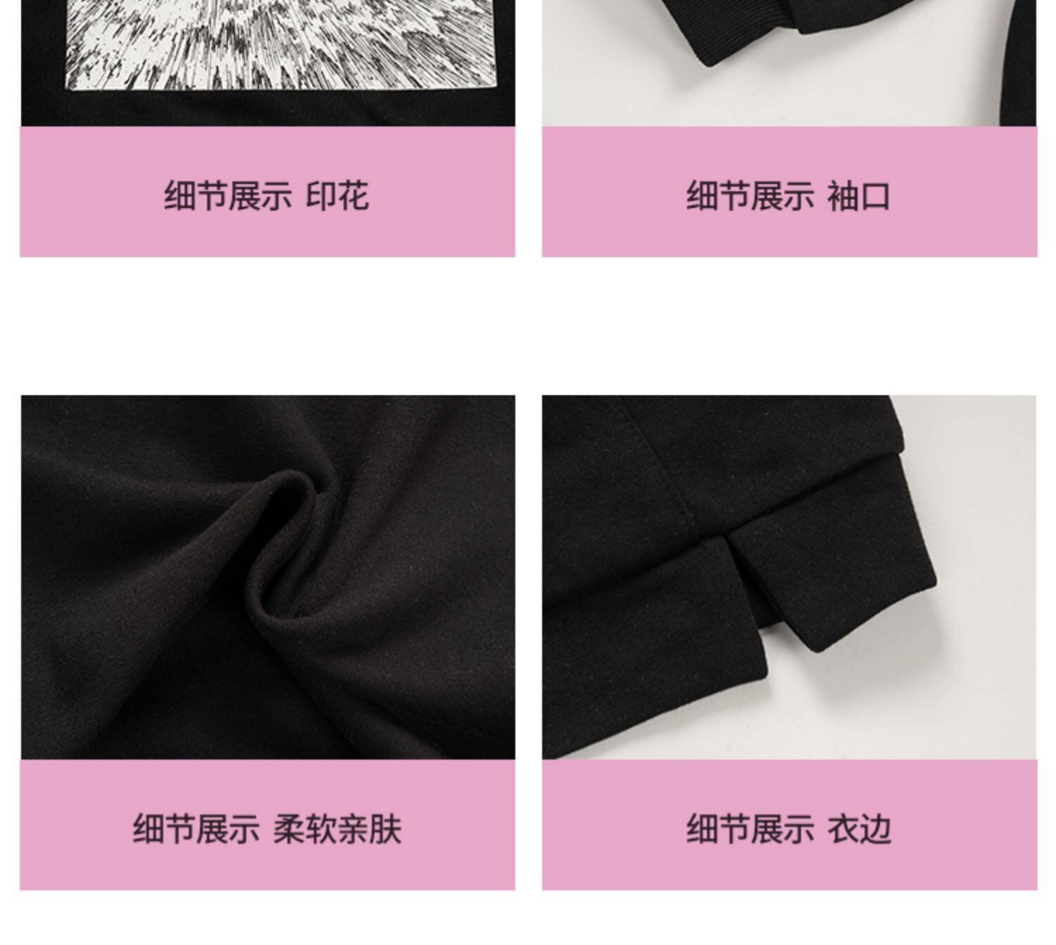 pinksavior【伊藤潤二共同名】黒と白のスリットジッパーデコレーションフード付き春柄セーター ホワイト ブラック プリント スプリング 春物 PSTB32877638751