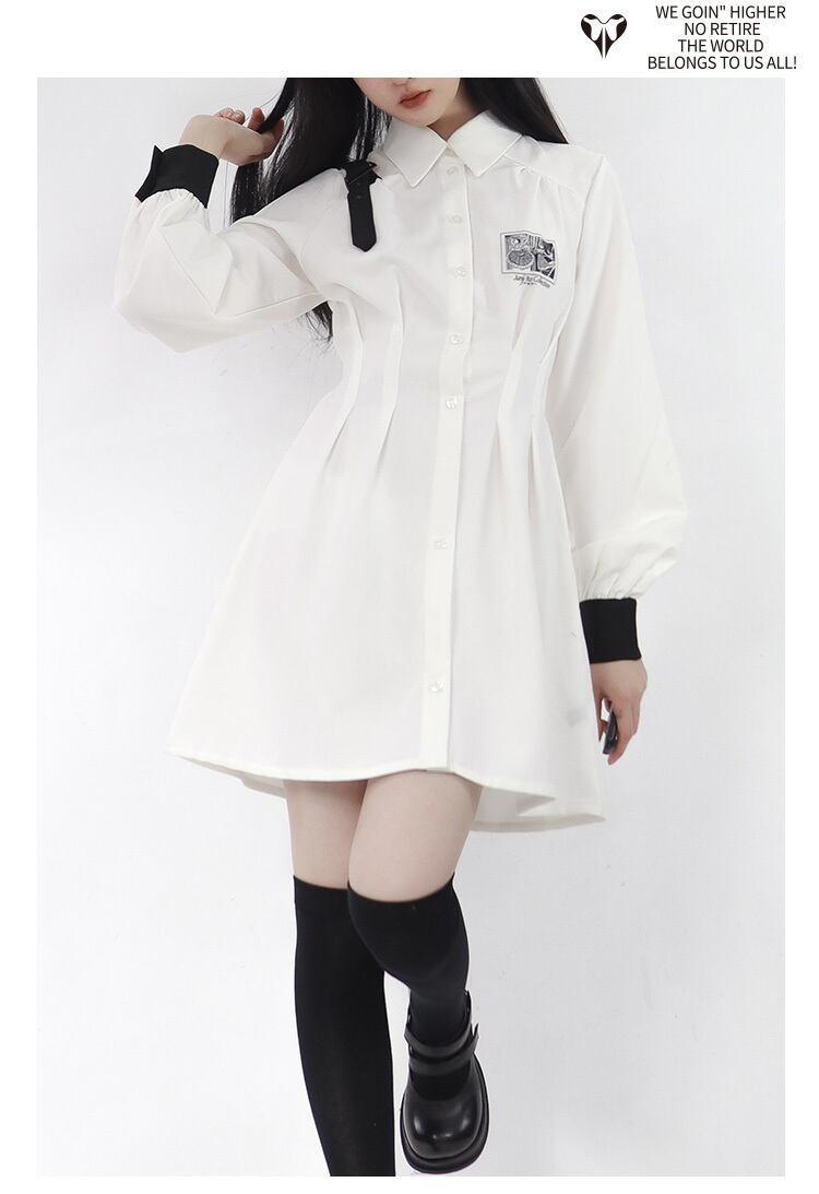 pinksavior【伊藤淳二ジョイントネーム】ショルダーアジャストバックルデザインウエスト白黒コントラストカラーシャツスカート ホワイト ブラック PSTB61739392549