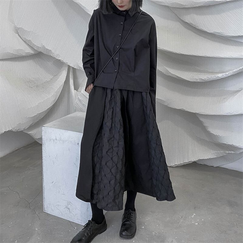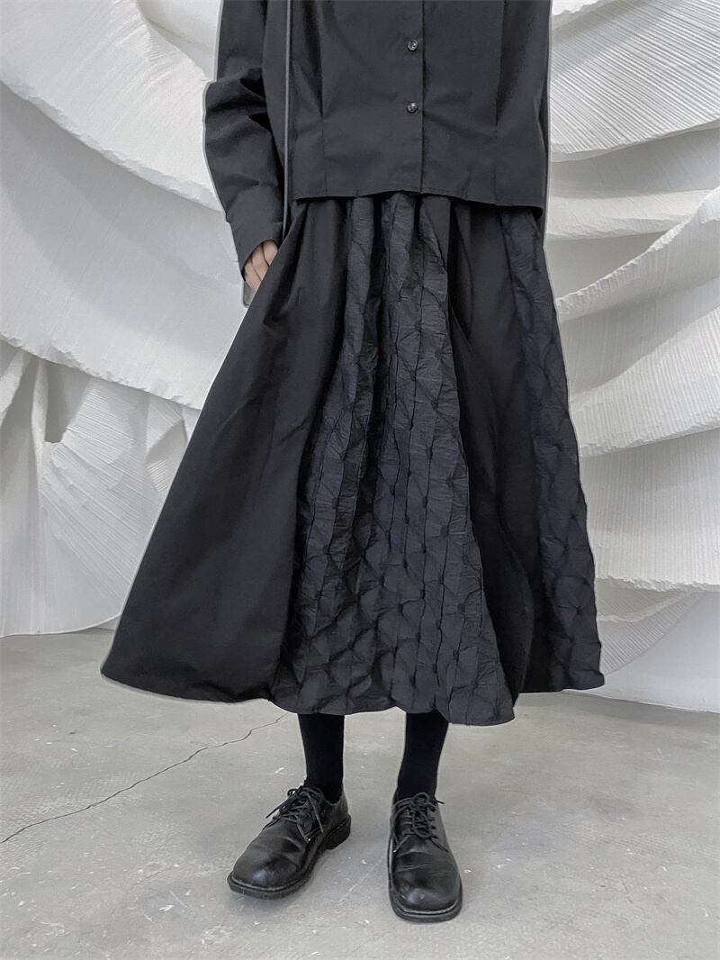 BLANK ANDWHITEダークニッチフィッシュスケールパターンステッチデザインスカート春の新しいAラインスカート ホワイト スプリング 春物 BWTB45843137532