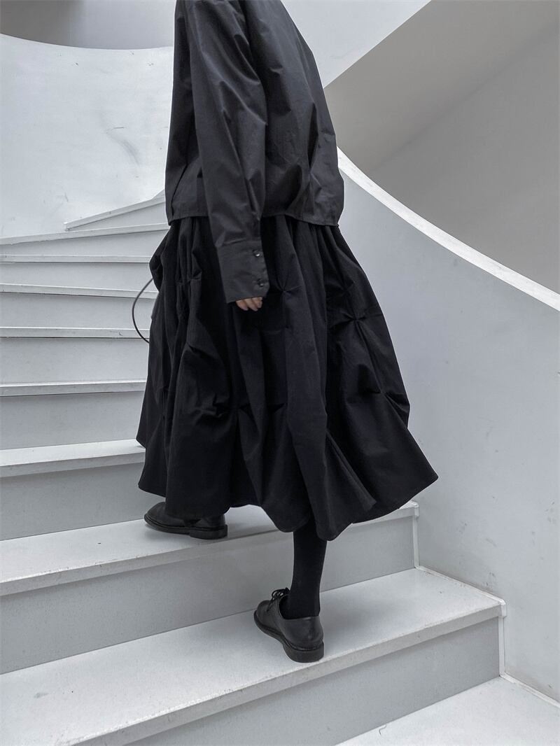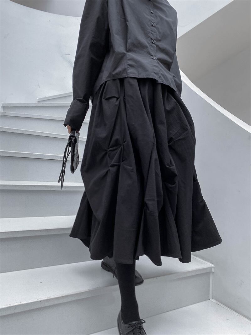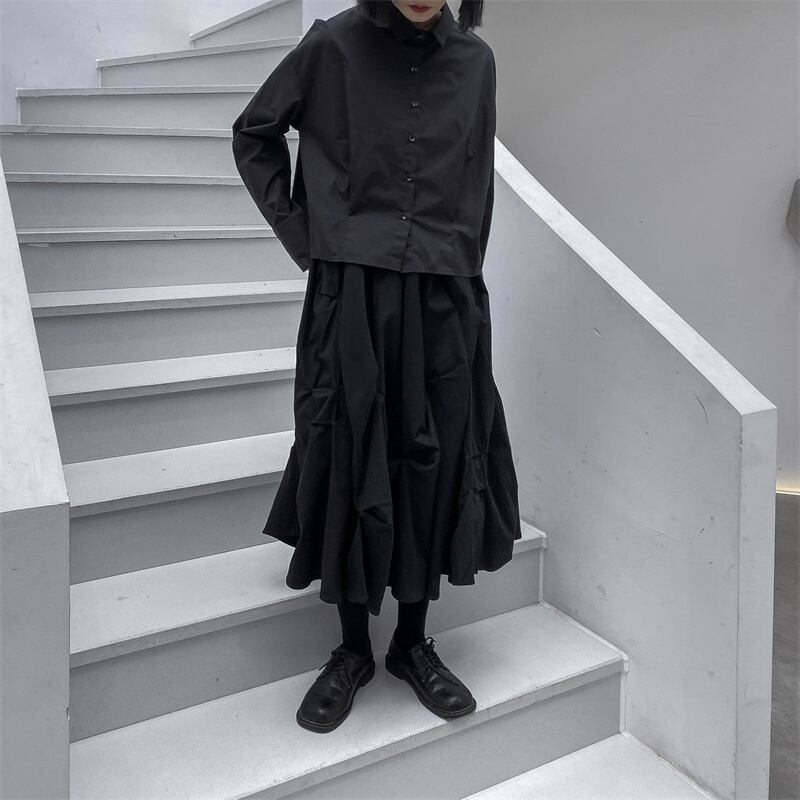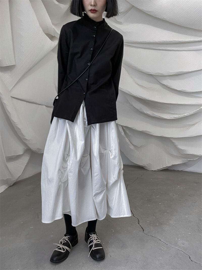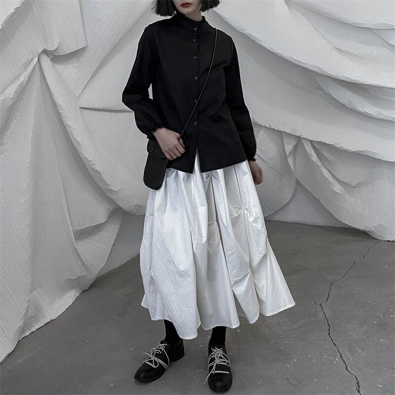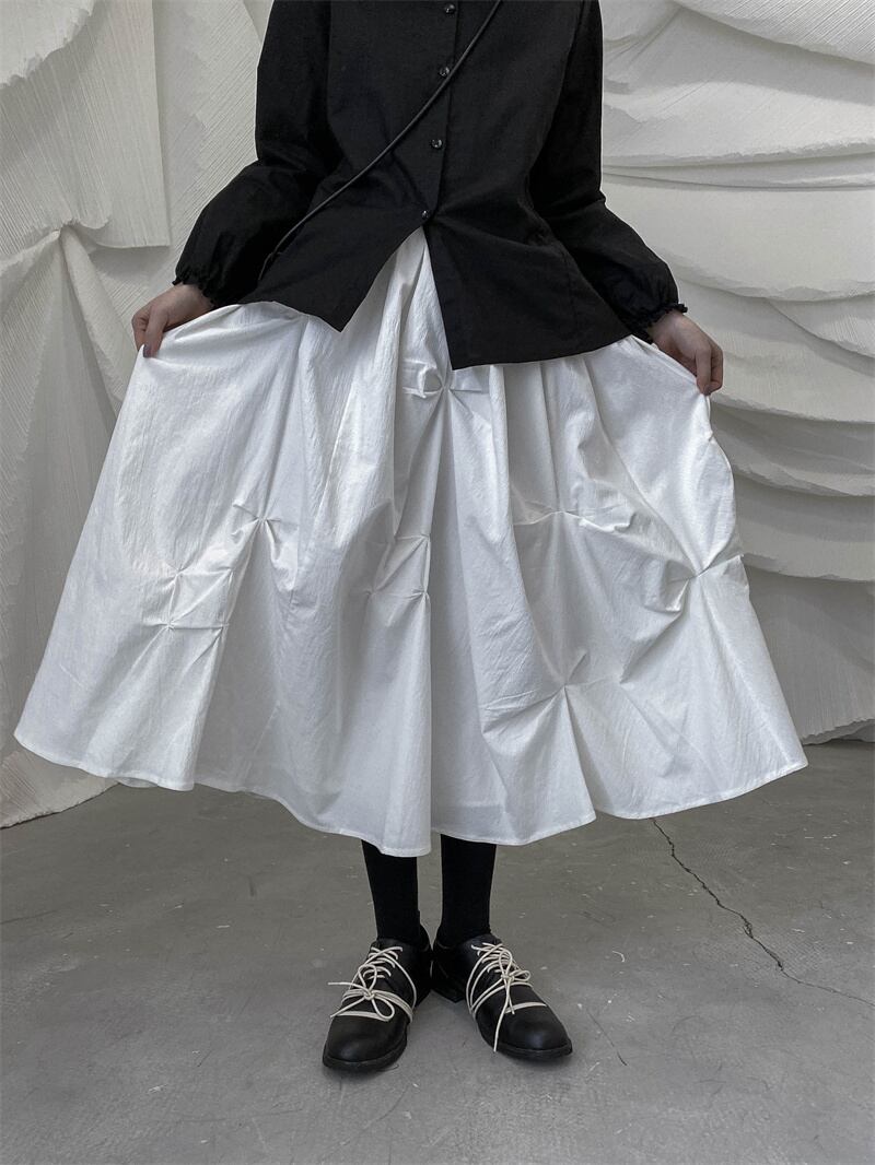BLANK ANDWHITEダークデザインのスカートコットンとリネンのプリーツハイウエストAラインロングスカート春新作 ハイウェスト ホワイト スプリング 春物 BWTB70944967258
