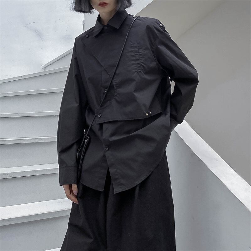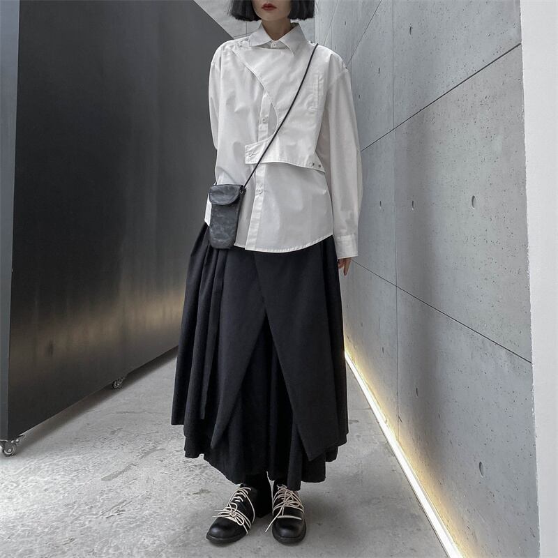 BLANK ANDWHITEダークイーズオリジナルデザインフェイクツーピースシャツ無地コットンカップルシャツ ホワイト ソリッドカラー BWTB80867649519
