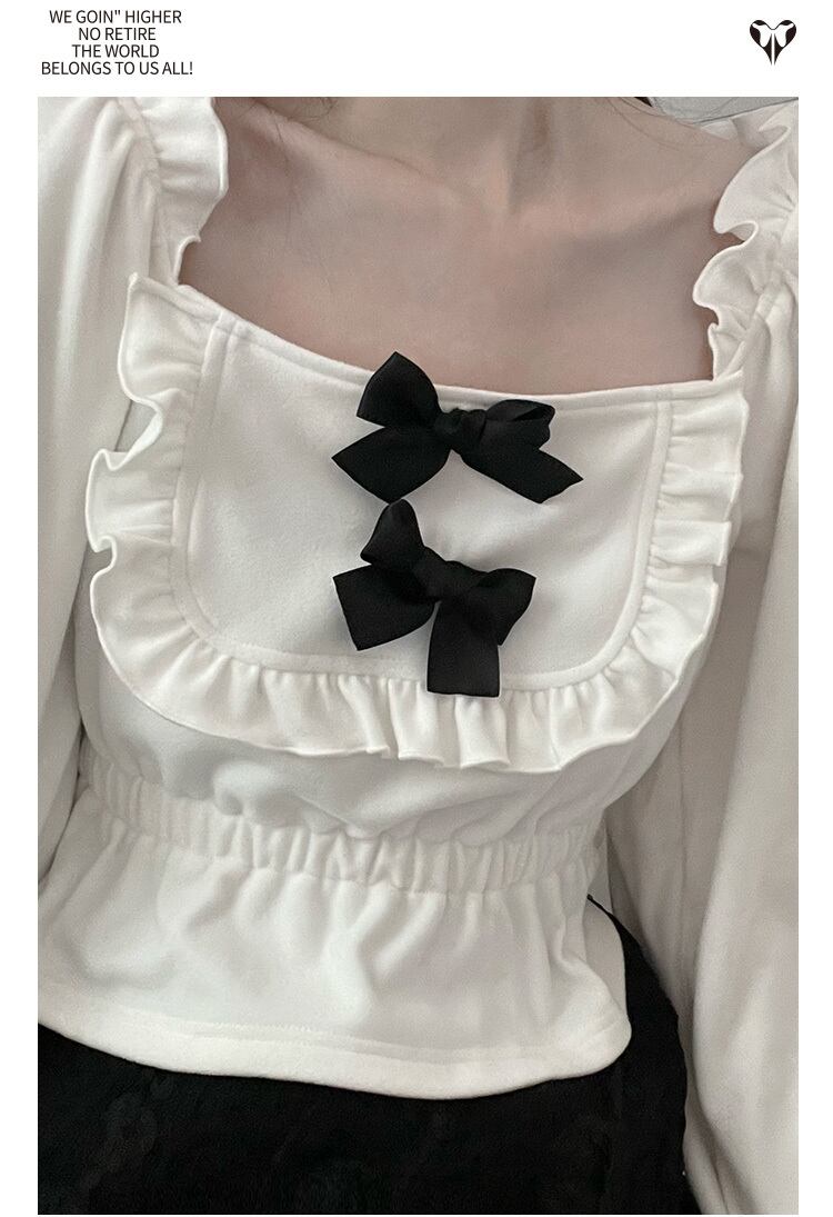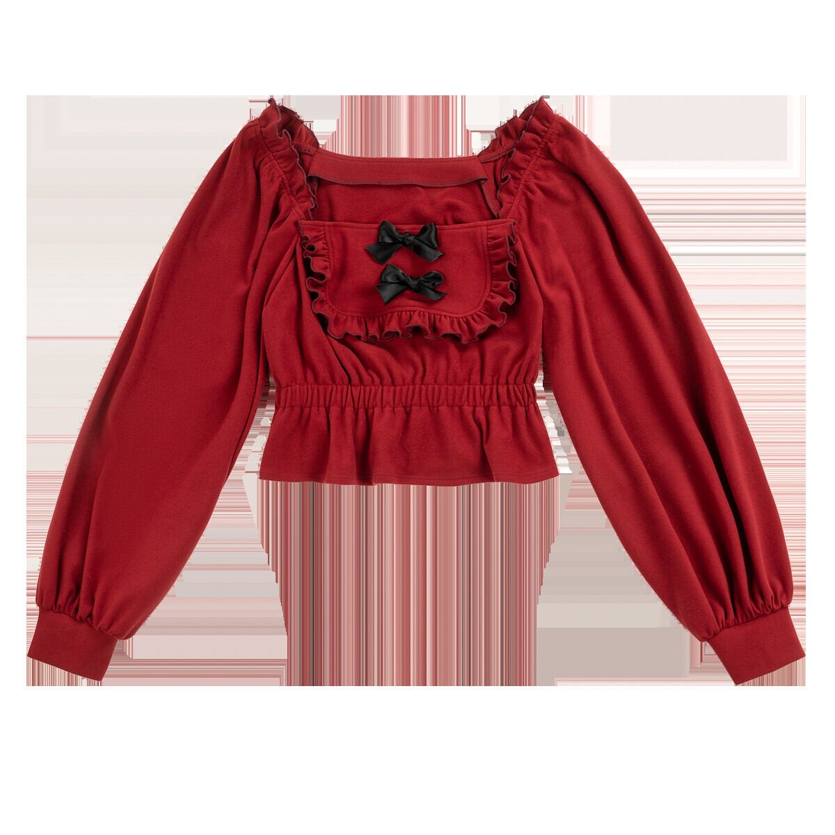 pinksaviorベルベット赤と白の弓飾りウエストのような気質春と秋のオールマッチボトミングトップ ホワイト レッド リボン スプリング 春物 オータム 秋物 PSTB49563825640