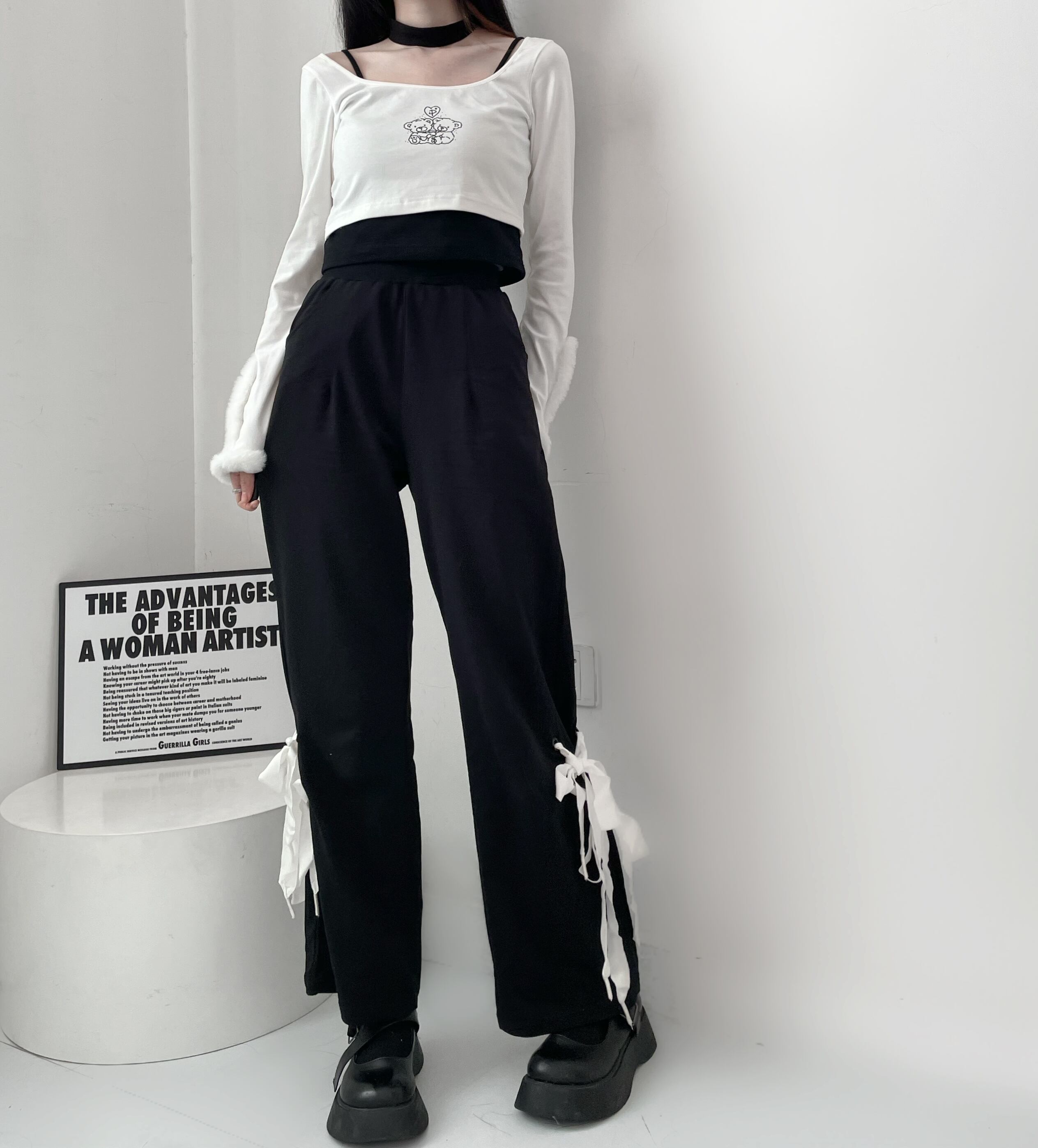 pinksaviorサイドストラップブラックカジュアル伸縮性のある春と夏のレギンスパンツ エラスティック スプリング 春物 サマー 夏物 PSTB92912259719
