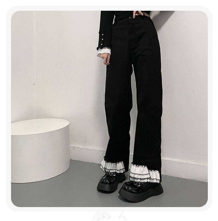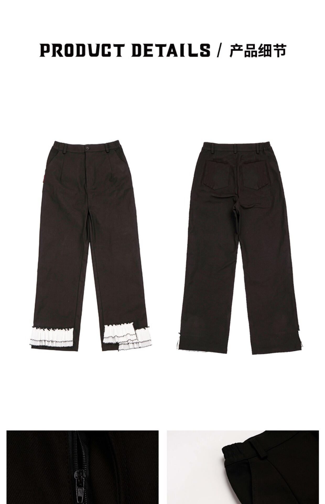 pinksavior純綿は春に長い脚を持つ黒のカジュアルなズボンをトリミングしました ロング ブラック コットン スプリング 春物 ピュア PSTB15860301317