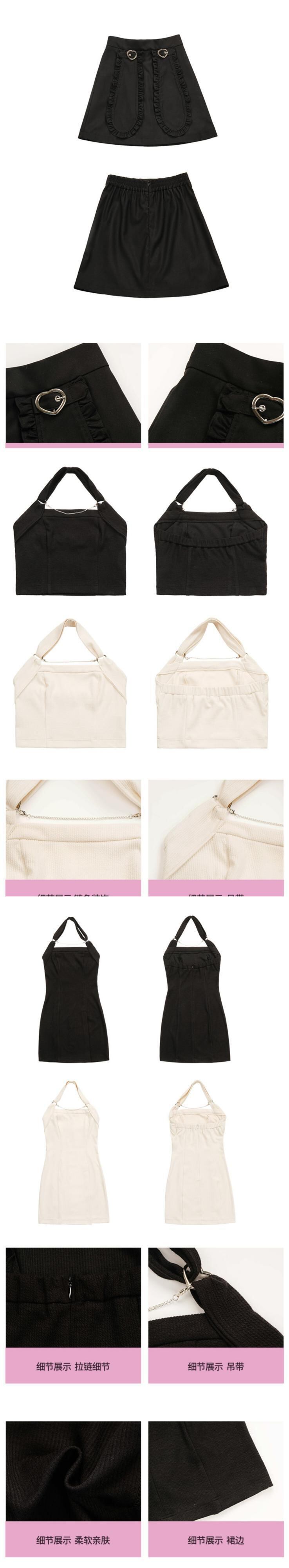 色:クリームベアカーディガンジャケットフリーベア(先行販売),クマを送るツキノワグマカーディガンジャケット(先行販売),クリームホルタードレス先行販売,黒のホルターネックドレス,クリームホルターネックサスペンダー,黒のホルターストラップ,ツキノワグマの耳のスカート