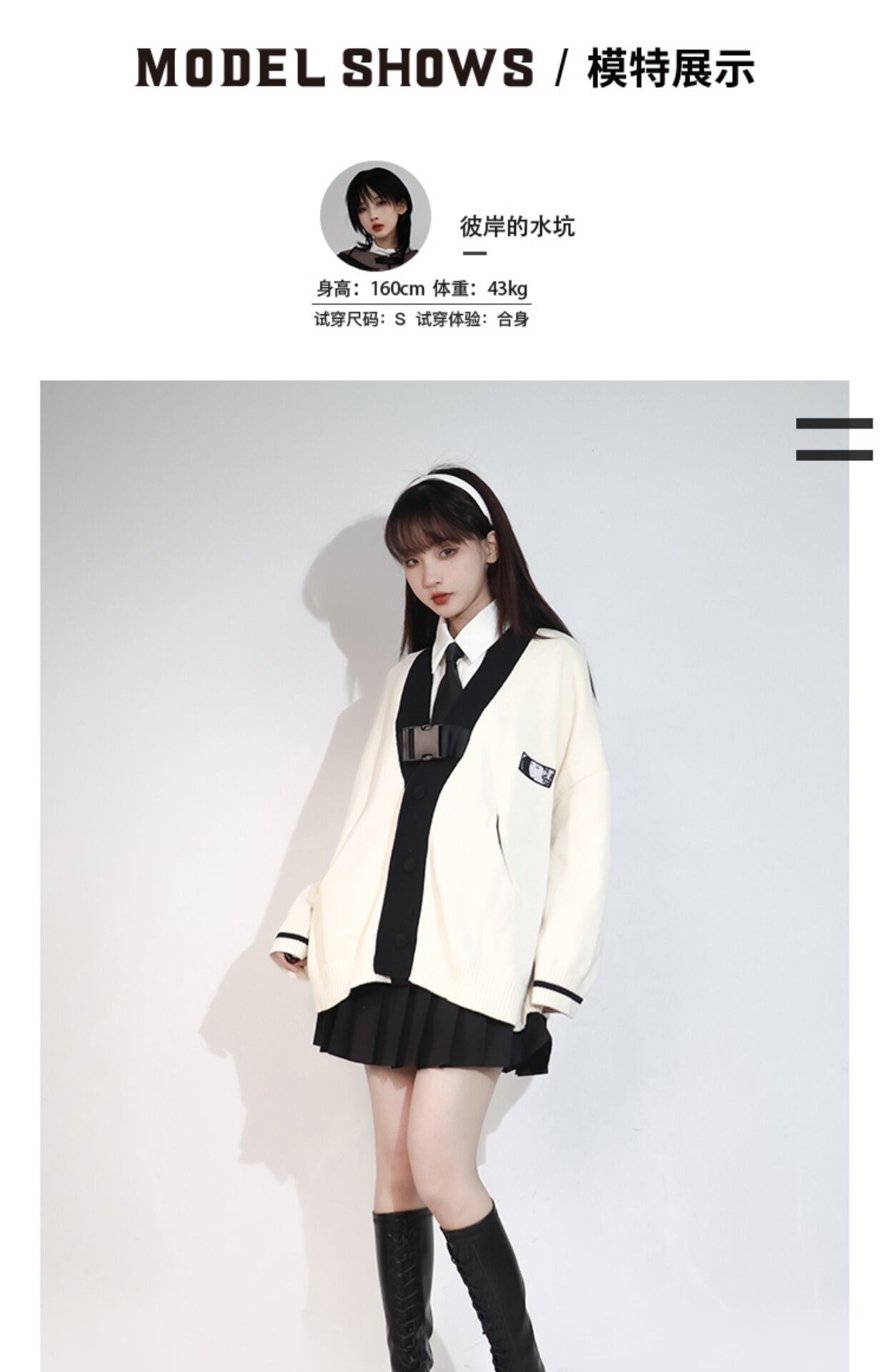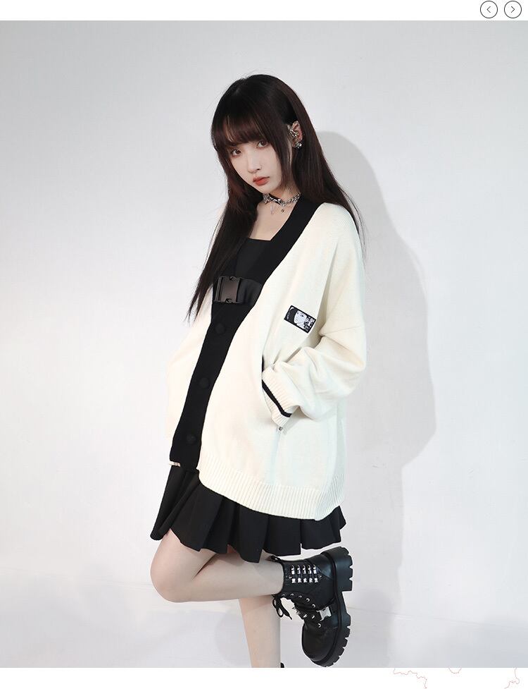 pinksavior[伊藤潤二共同名]スポットフジアンヘッドポートレート白黒コントラストカラーニットセーターのバッチのみ ホワイト ブラック PSTB94522303426