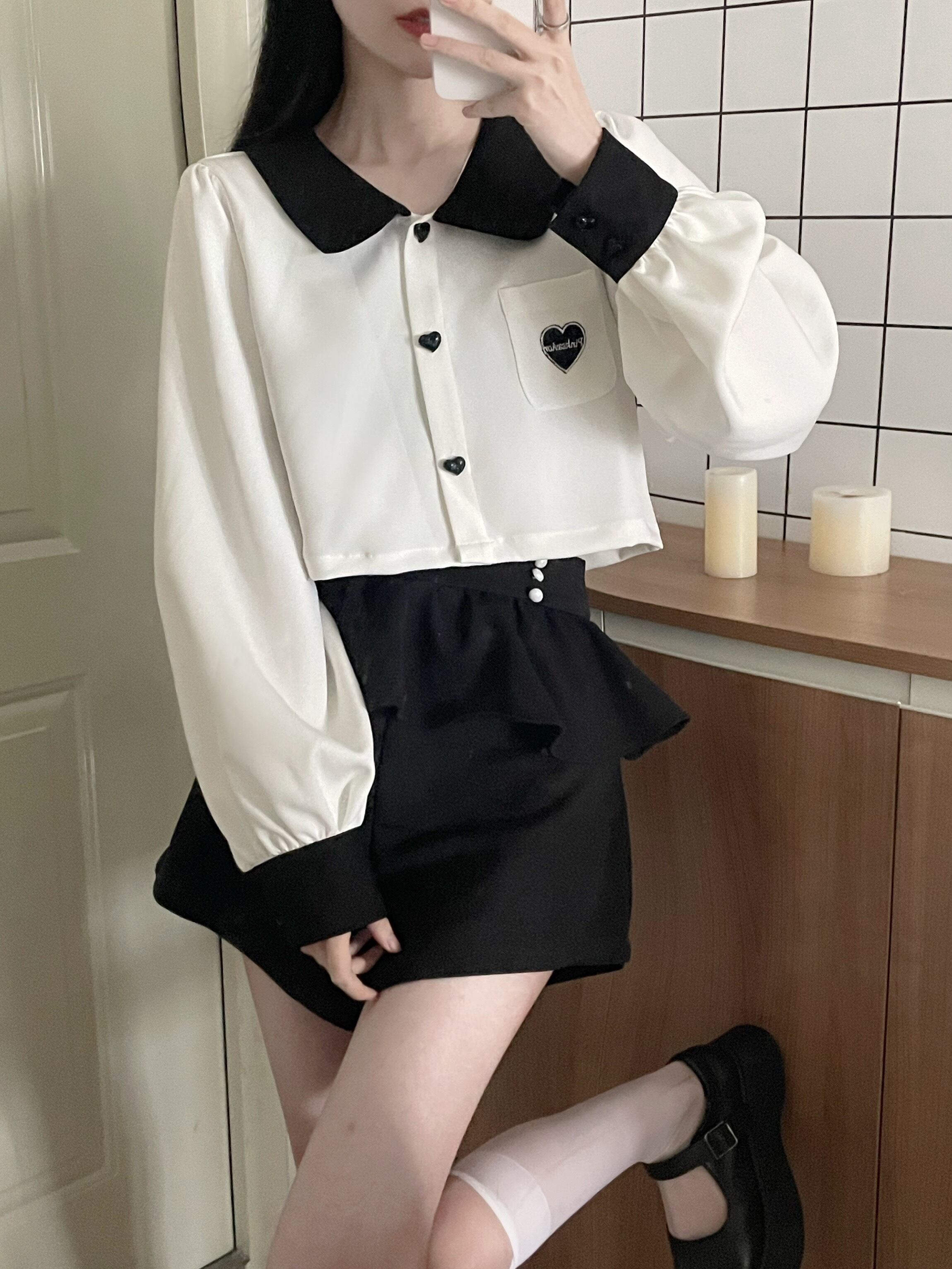 pinksaviorピンクと白の春の人形の襟のシャツ+レースウエストスリムショーツスポット ホワイト スプリング 春物 ブルマー PSTB93298585724