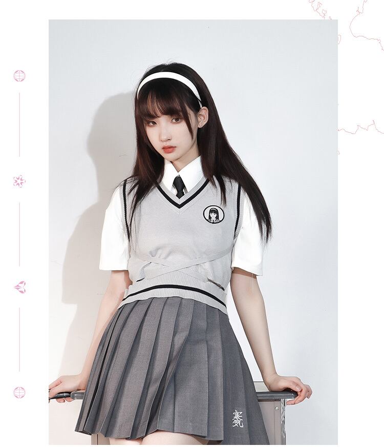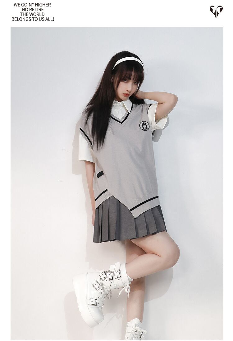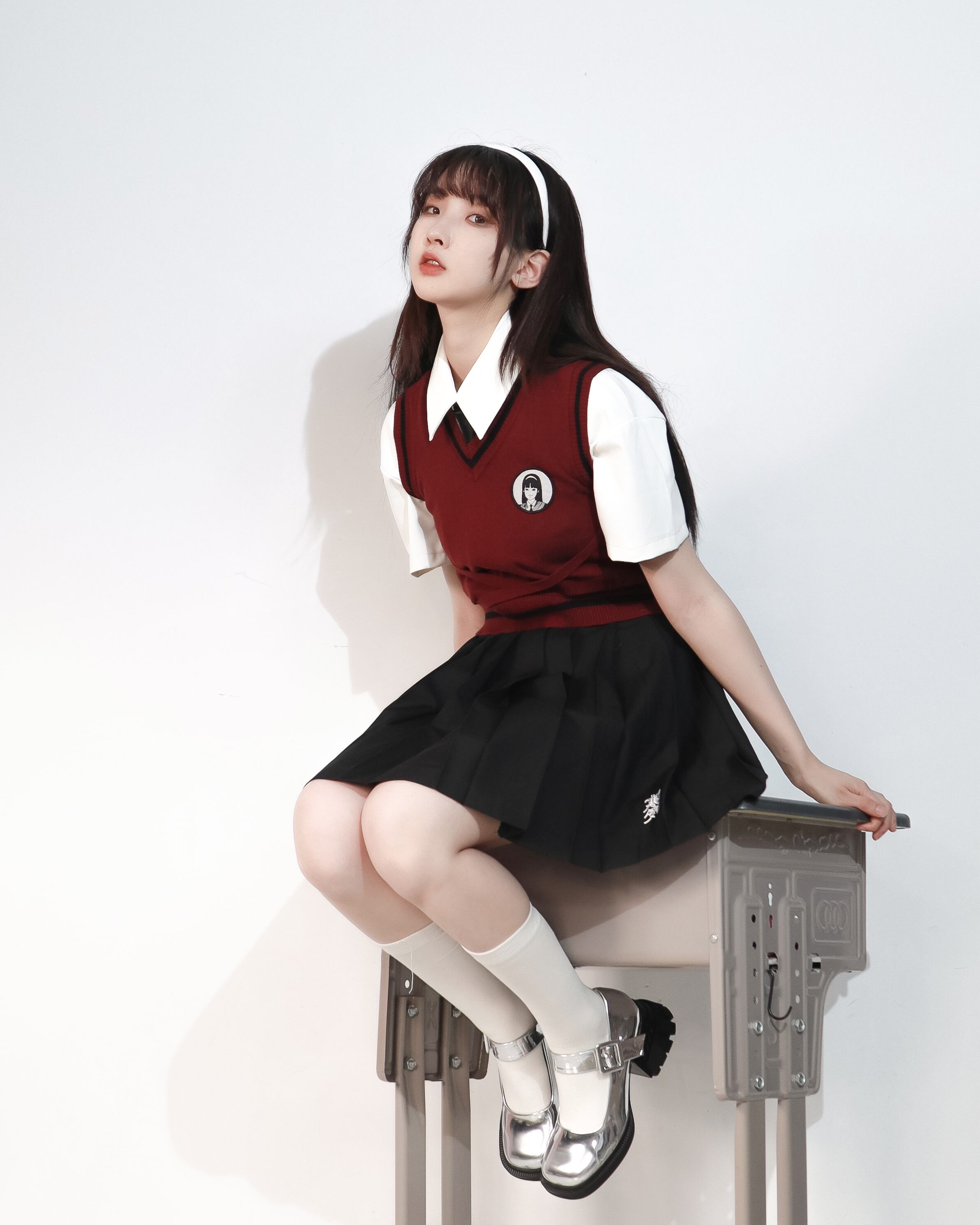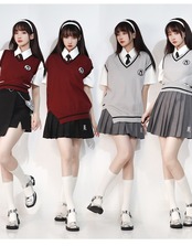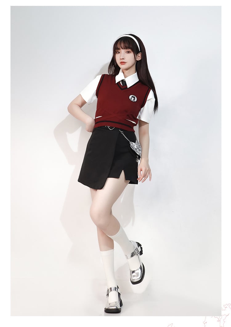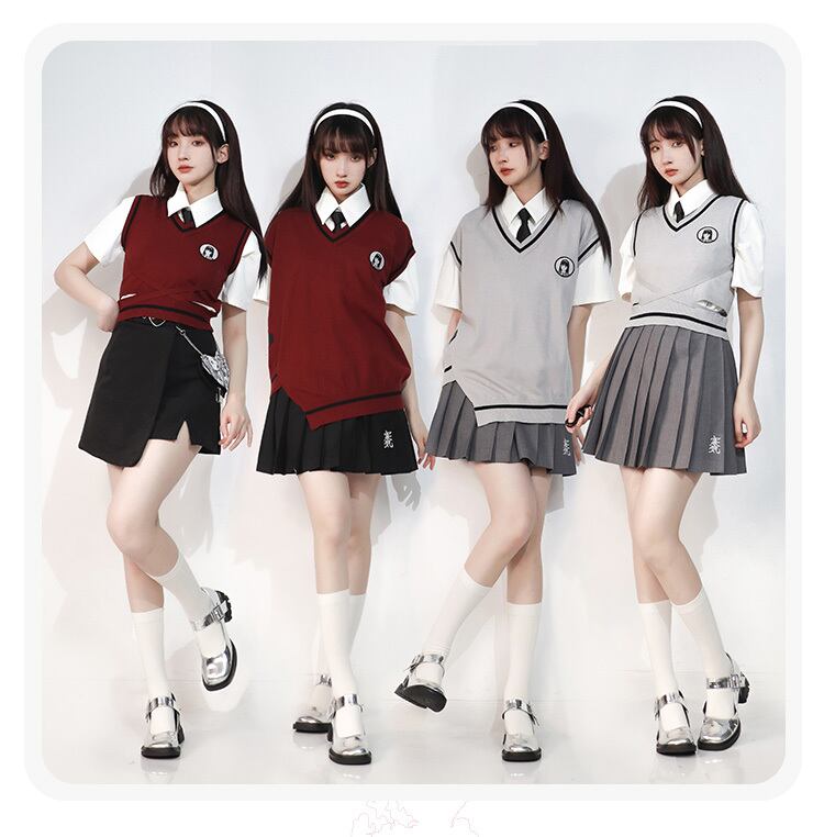 pinksavior【伊藤潤二共同名】BM風ショートフジアンネクタイカジュアルニット赤・グレーベスト レッド PSTB63624880738