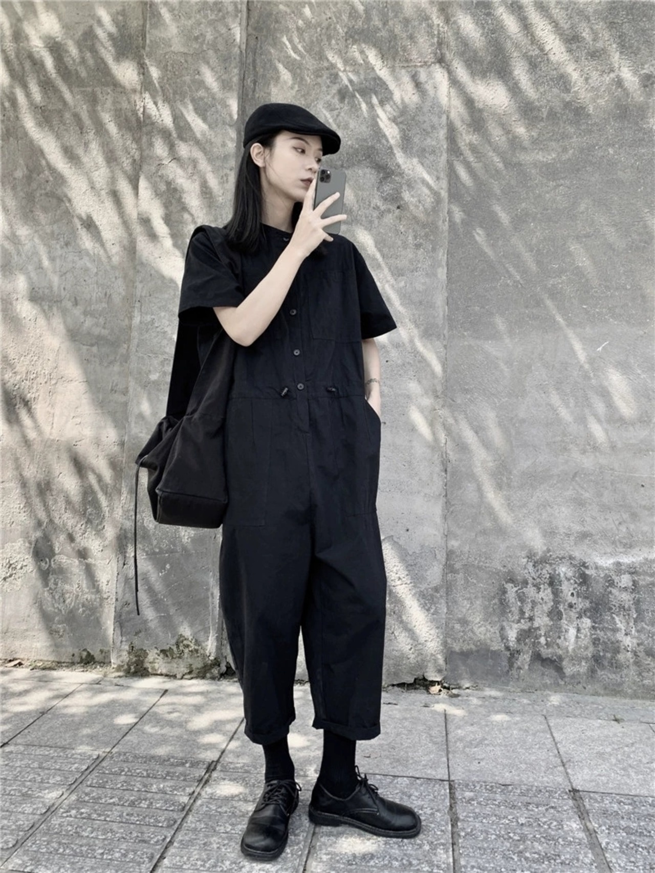 BLANKANDWHITEダーク半袖オーバーオール9点ワンピーススーツカップルカジュアルパンツ夏薄切片 ホワイト サマー 夏物 BWTB376190696