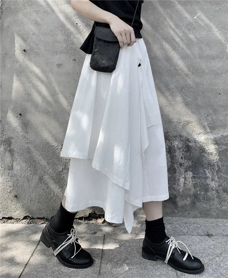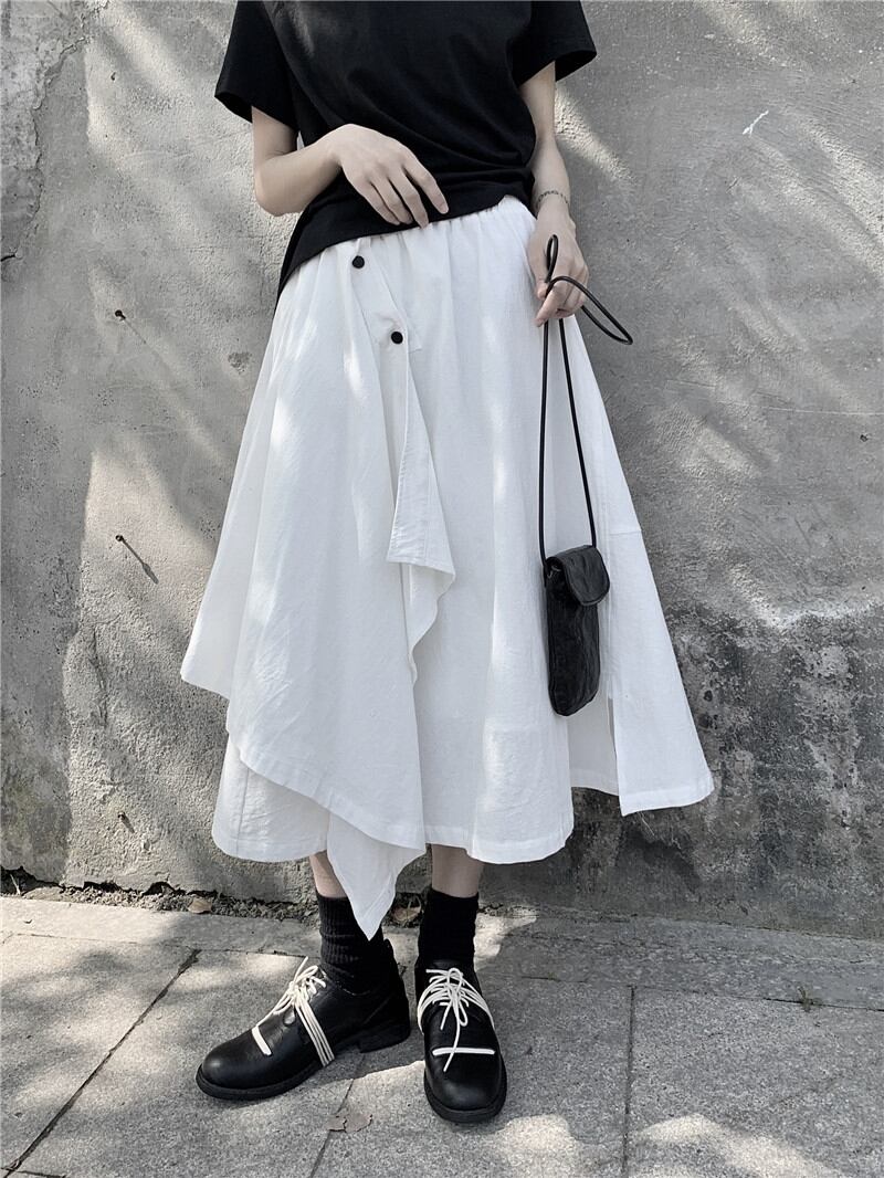 BLANKANDWHITEダークブラックとホワイトの不規則なデザインのAラインスカートコットンハイウエストスリムサマー薄片 ハイウェスト 夏物 BWTB47121081549