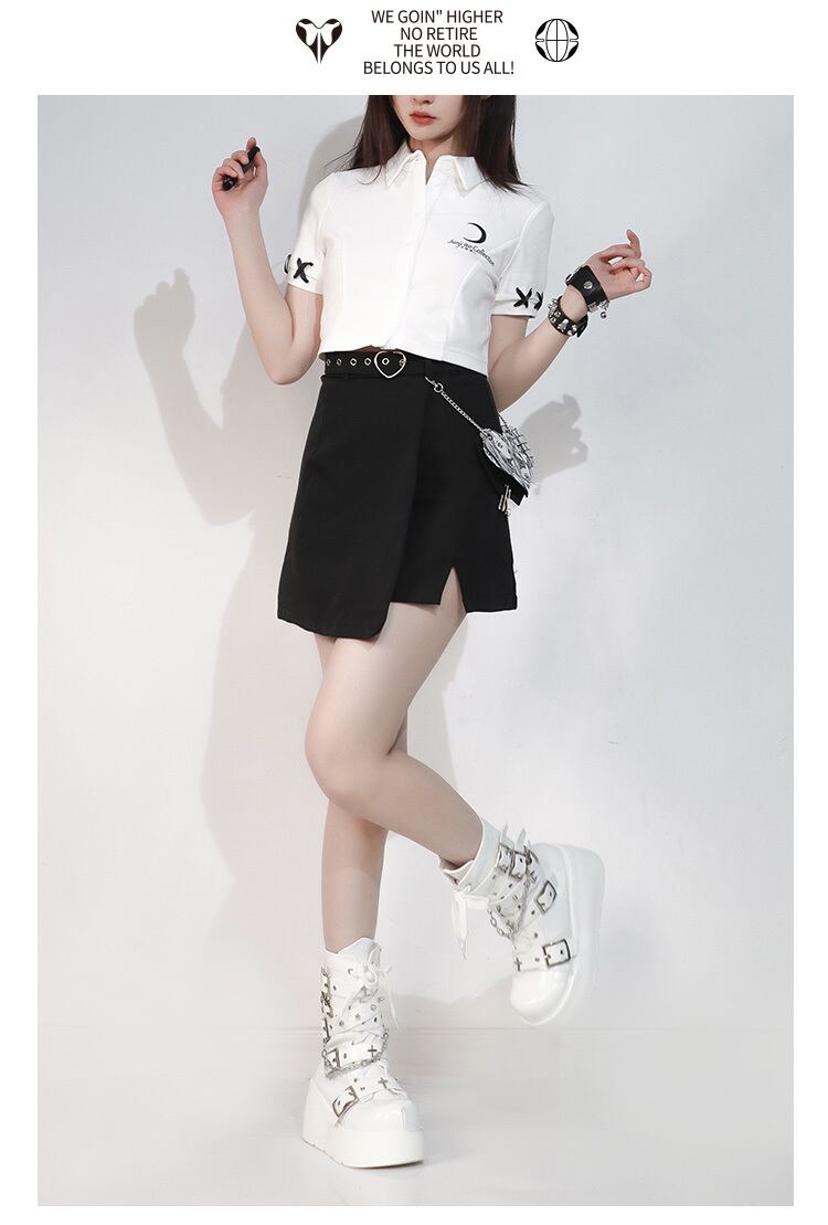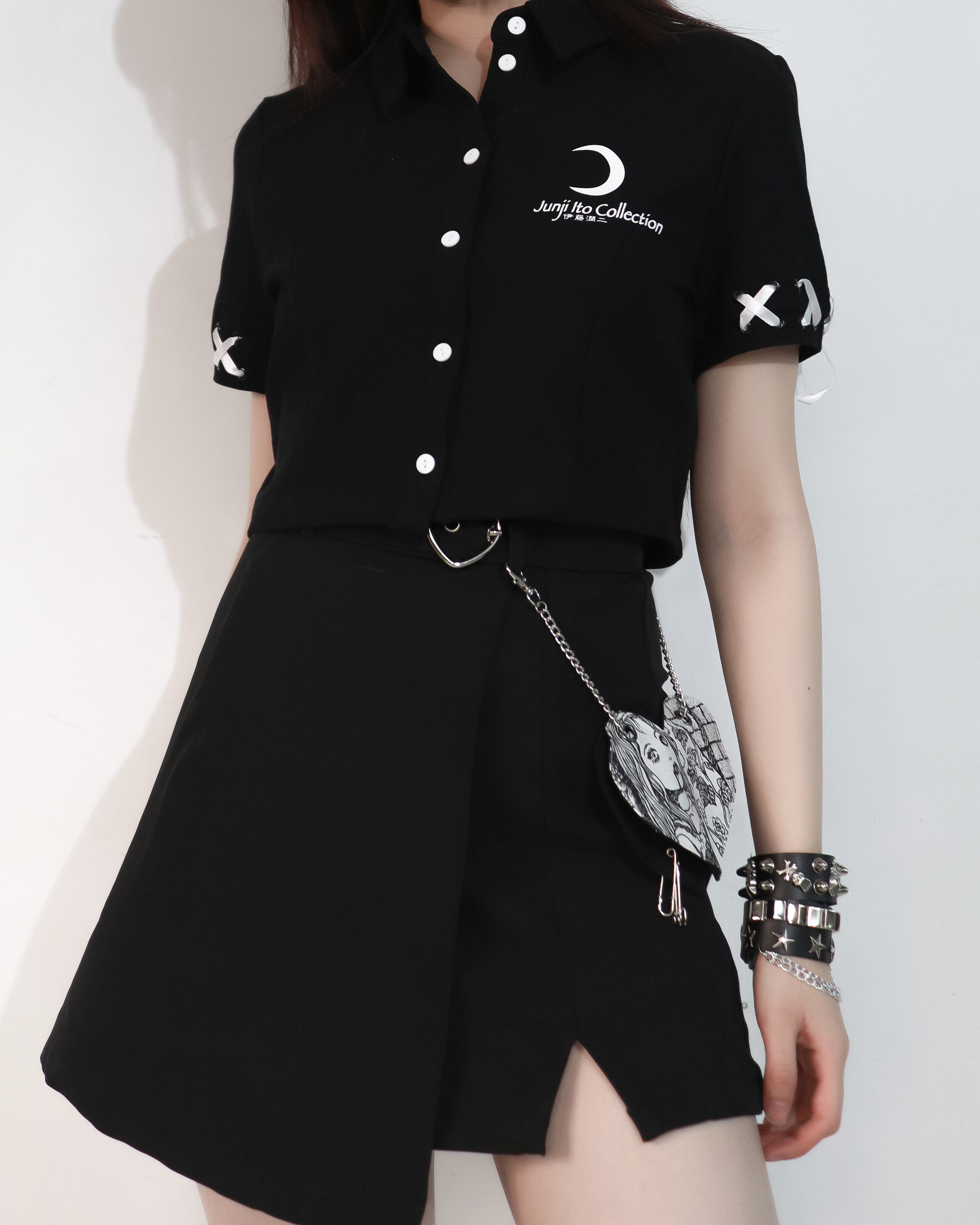 pinksavior【伊藤潤二共同名】パールテクスチャー白黒ストラップボタンショートトップサマー ホワイト ブラック 夏物 真珠 PSTB48724811915