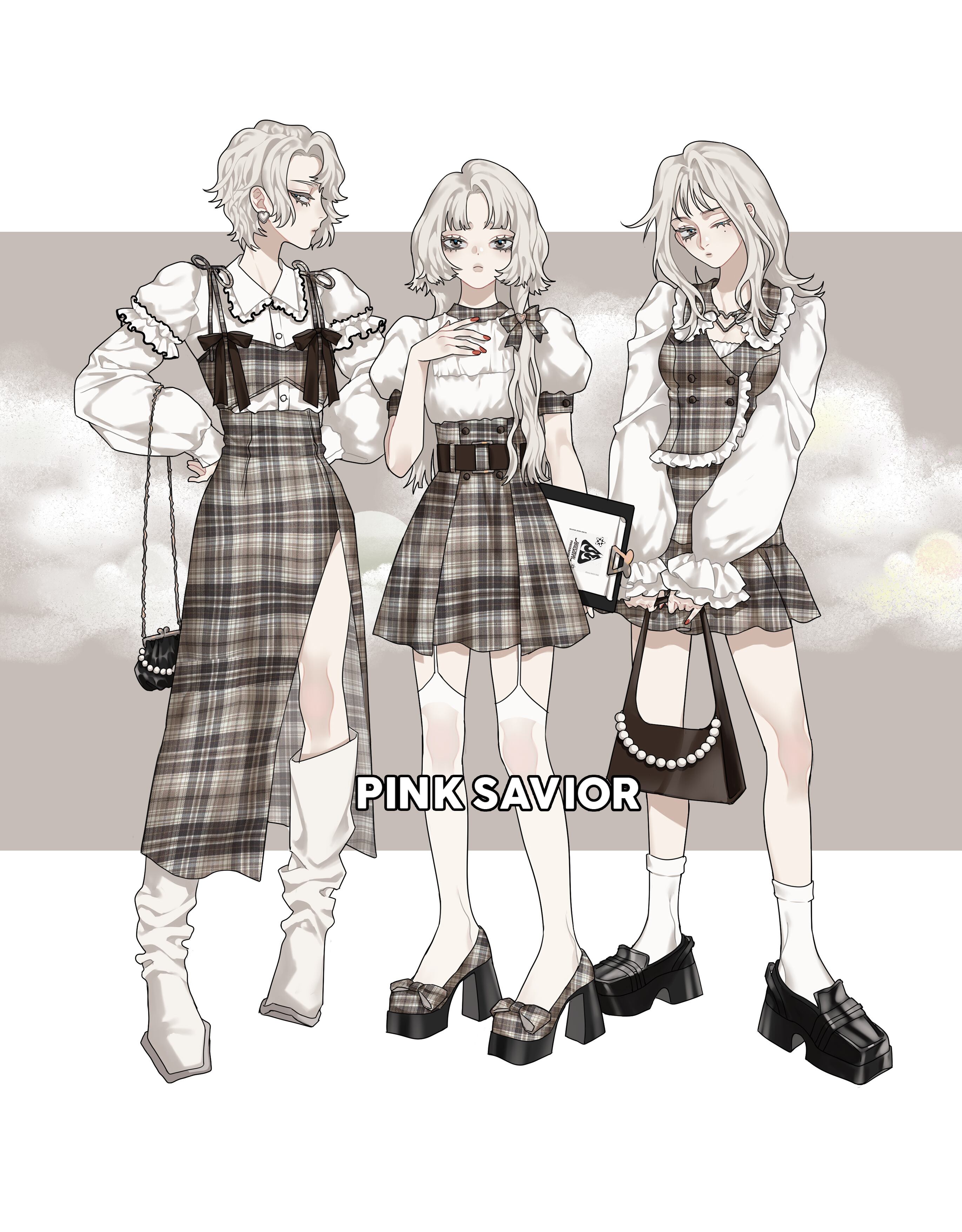 pinksavior[サンセットシャンパン]チェック柄サスペンダースカートレース装飾シャツ2022年春の新作女性 スプリング 春物 PSTB19103454641