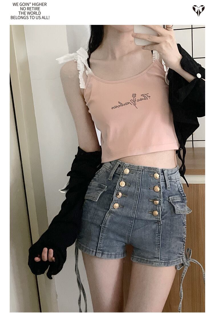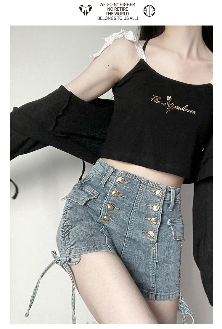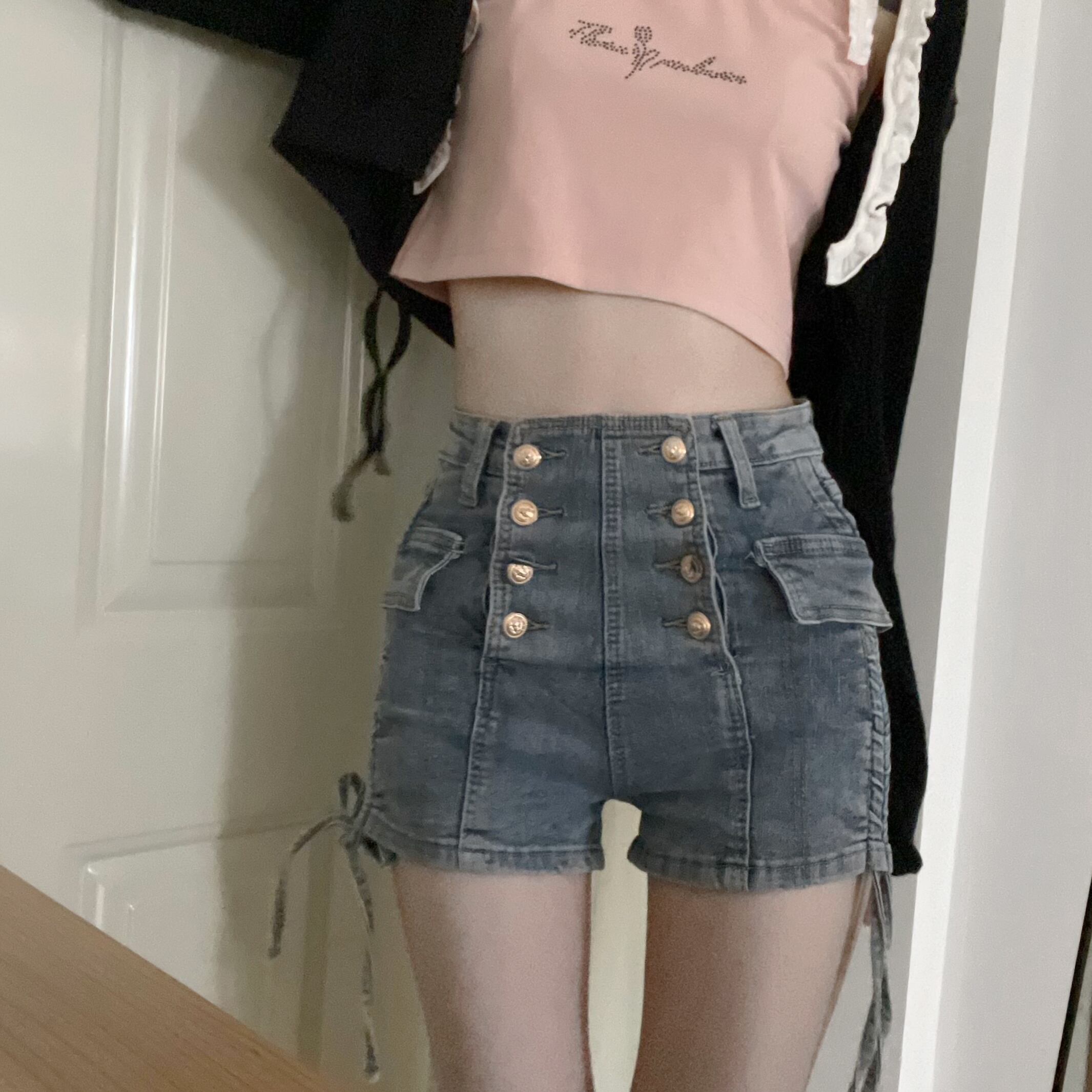 pinksaviorダブルブレストハイウエストデニムショーツ女性の夏の黒の小さなパンツ純粋な着用意欲 ブラック サマー 夏物 ブルマー ピュア PSTB2615629722