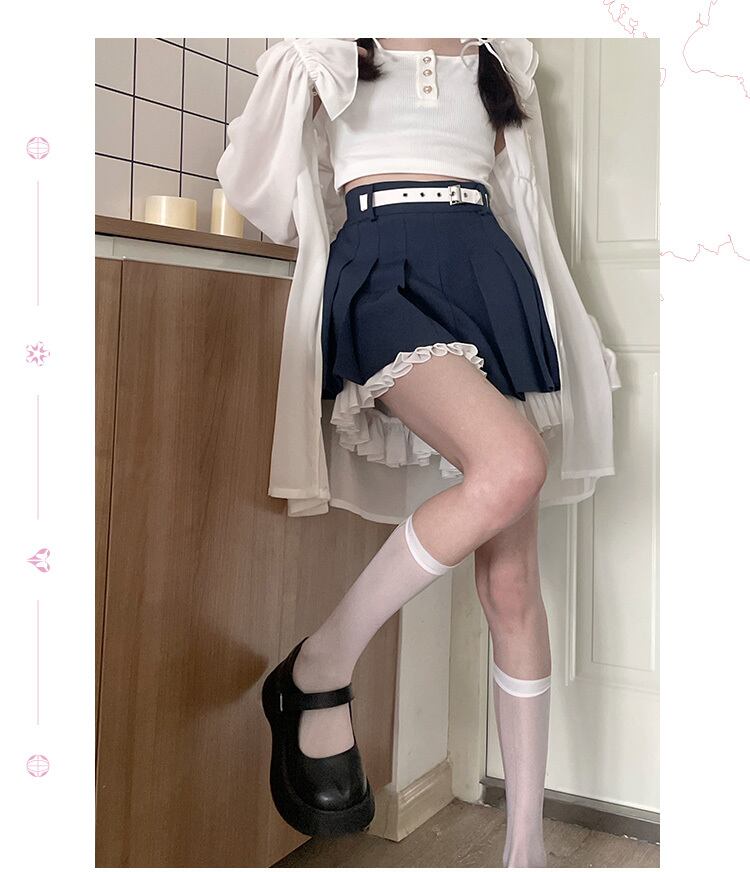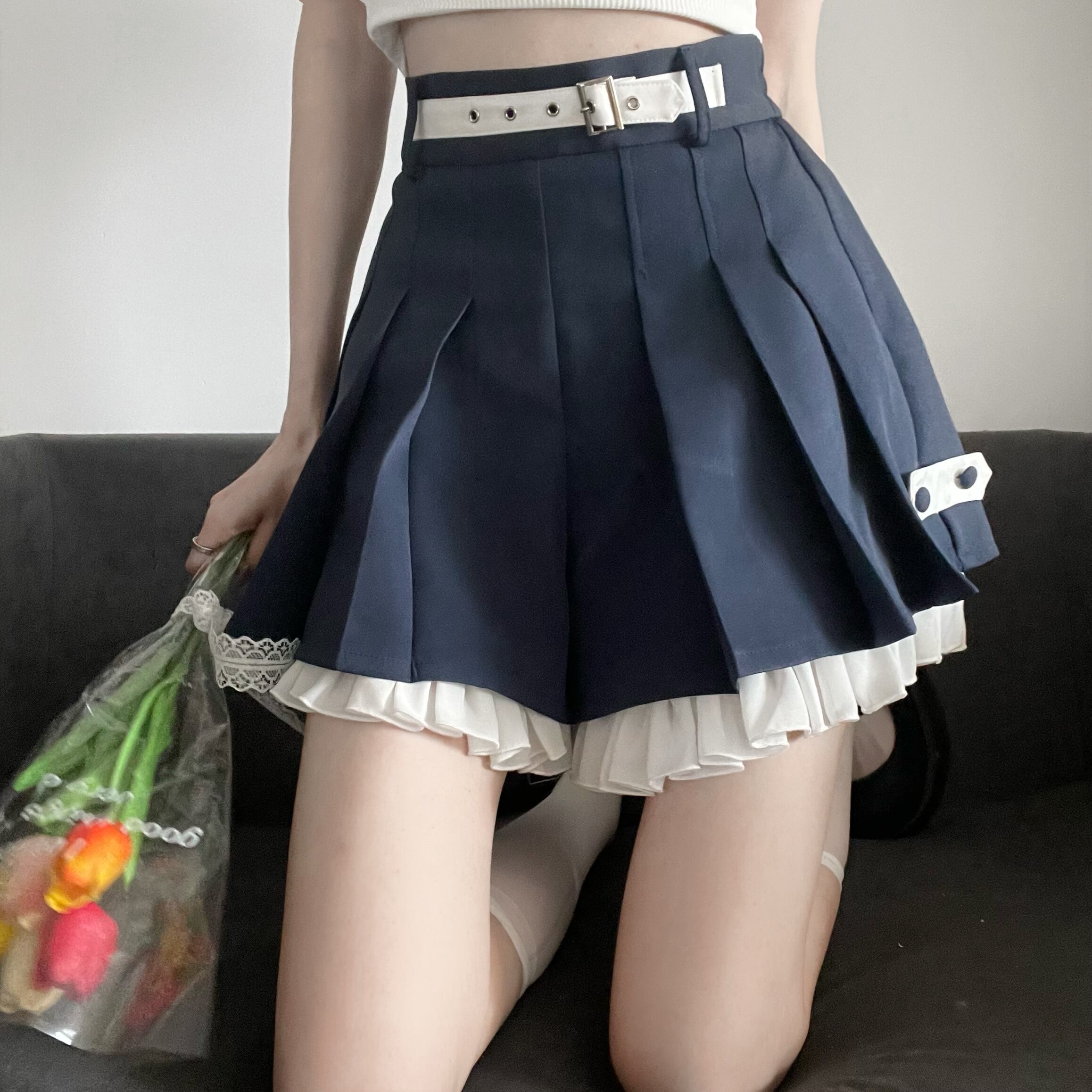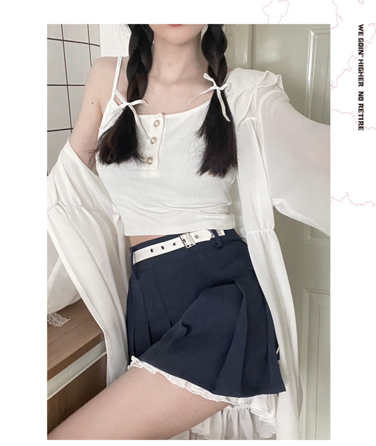 pinksavior[海の砂の泡]ネイビーy日焼け止めシャツパールボタンスカートパンツピュアデザイアスーツ 真珠 PSTB50417501528