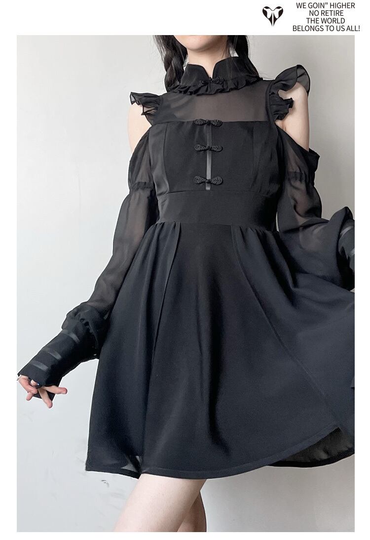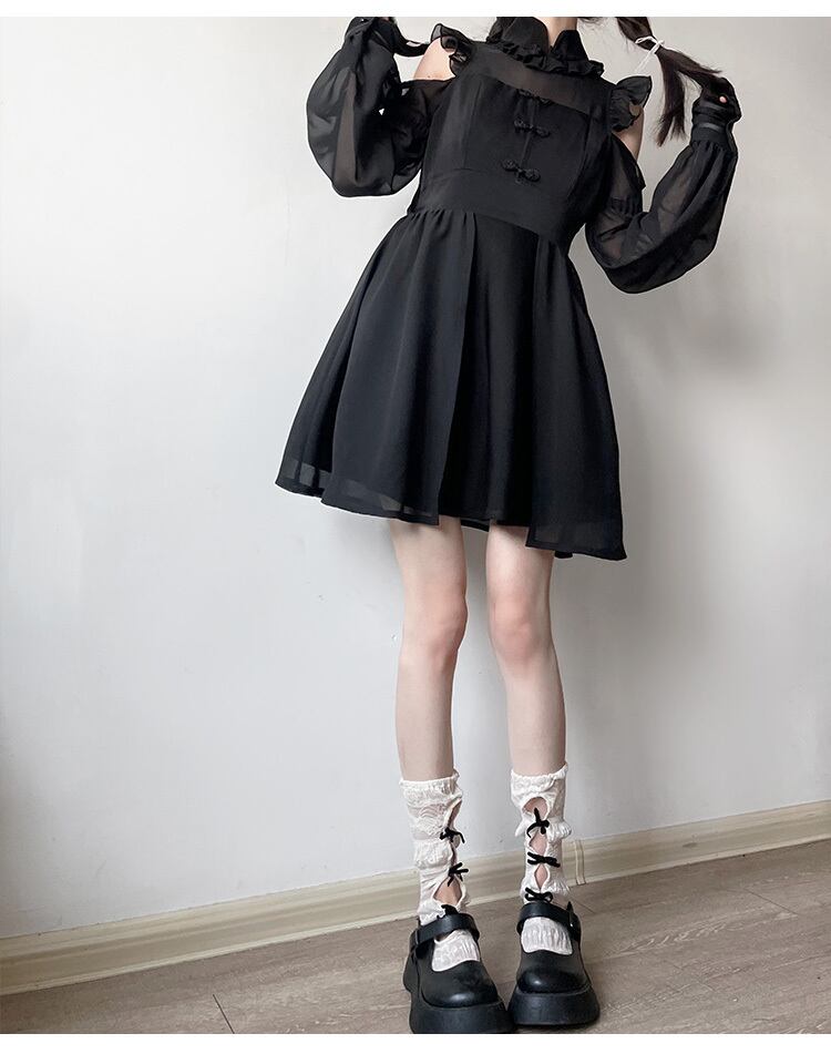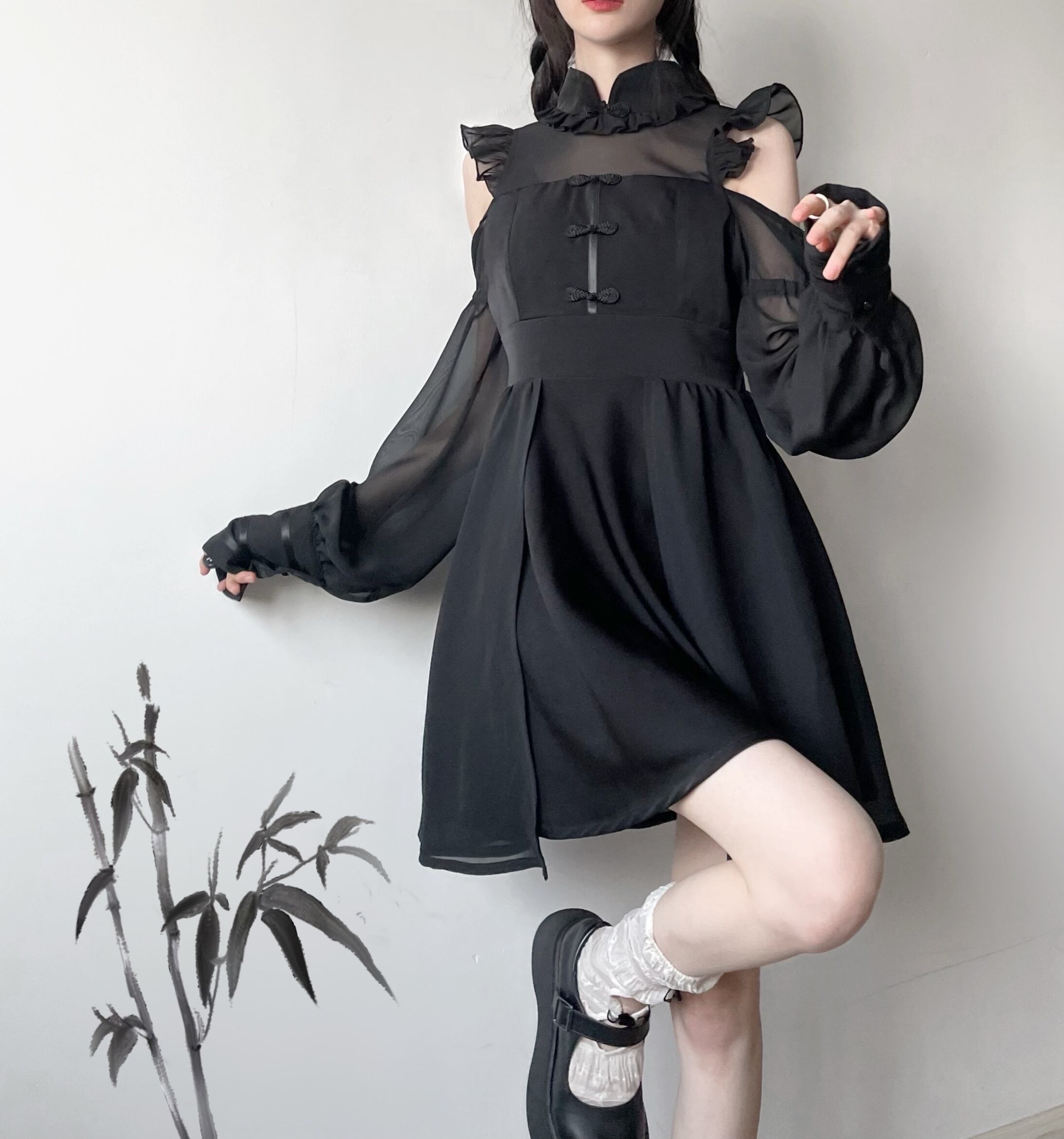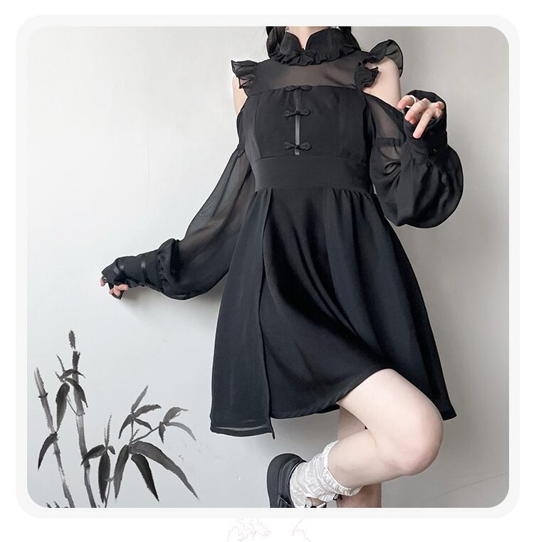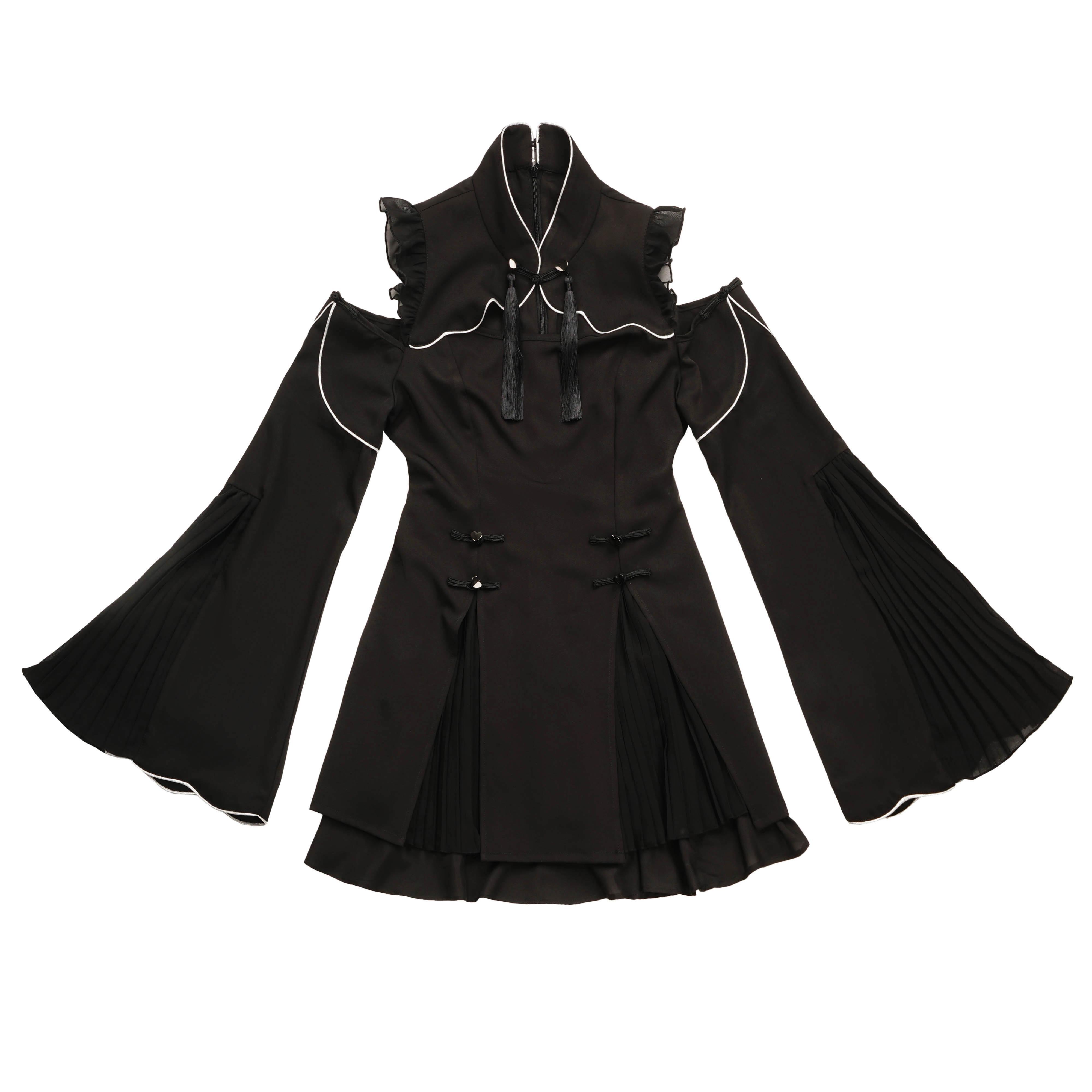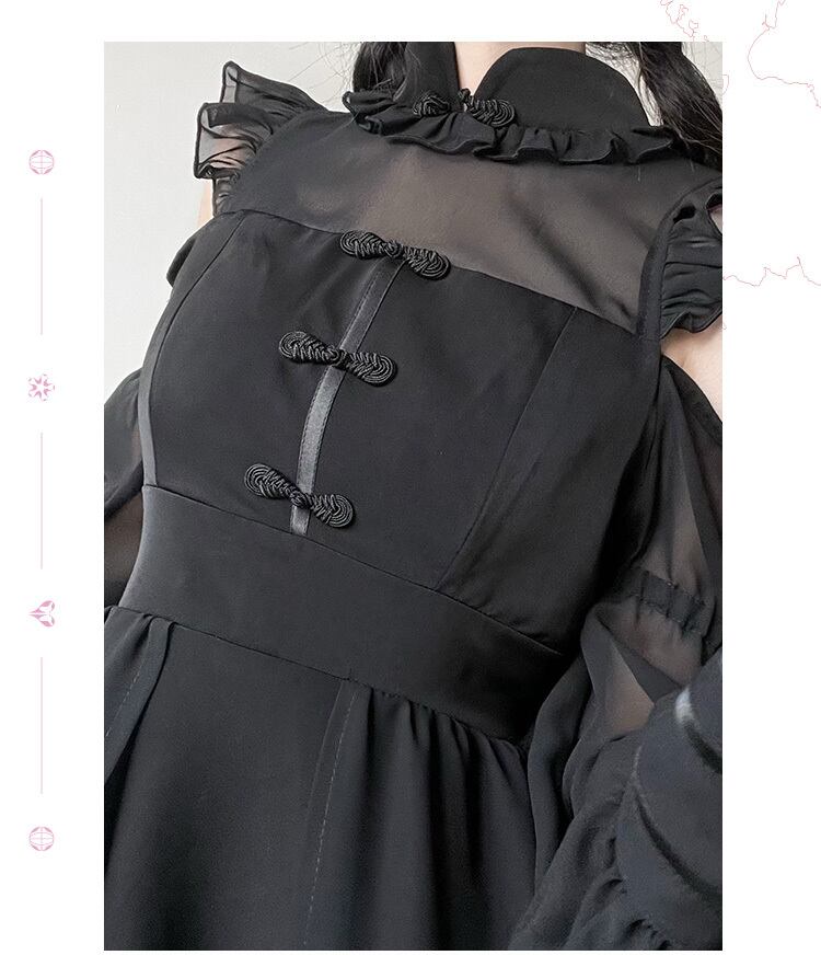 pinksavior[プラムオペラ]中国風の改良された肩のフライングスリーブウエストブラックボタンアップスカート PSTB2037763147