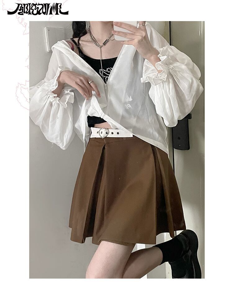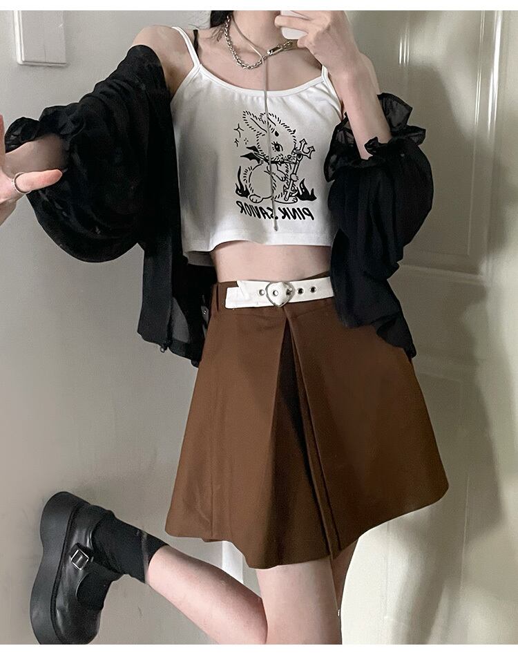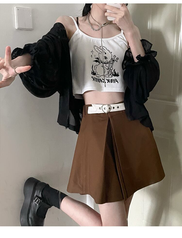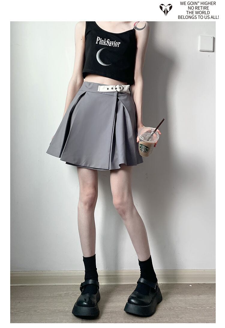 pinksavior3色プリーツレザー調節可能なバックル春と夏のオールマッチスカート スプリング 春物 サマー 夏物 アジャスタブル PSTB48095796656