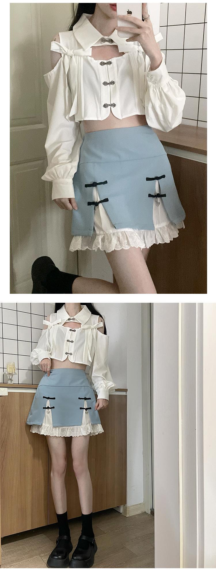 色:ホワイトのショルダーシャツスポット,ピンクのショルダーシャツスポット,ブルーボウペンダントスカートスポット,ブラックバタフライペンダントスカートスポット